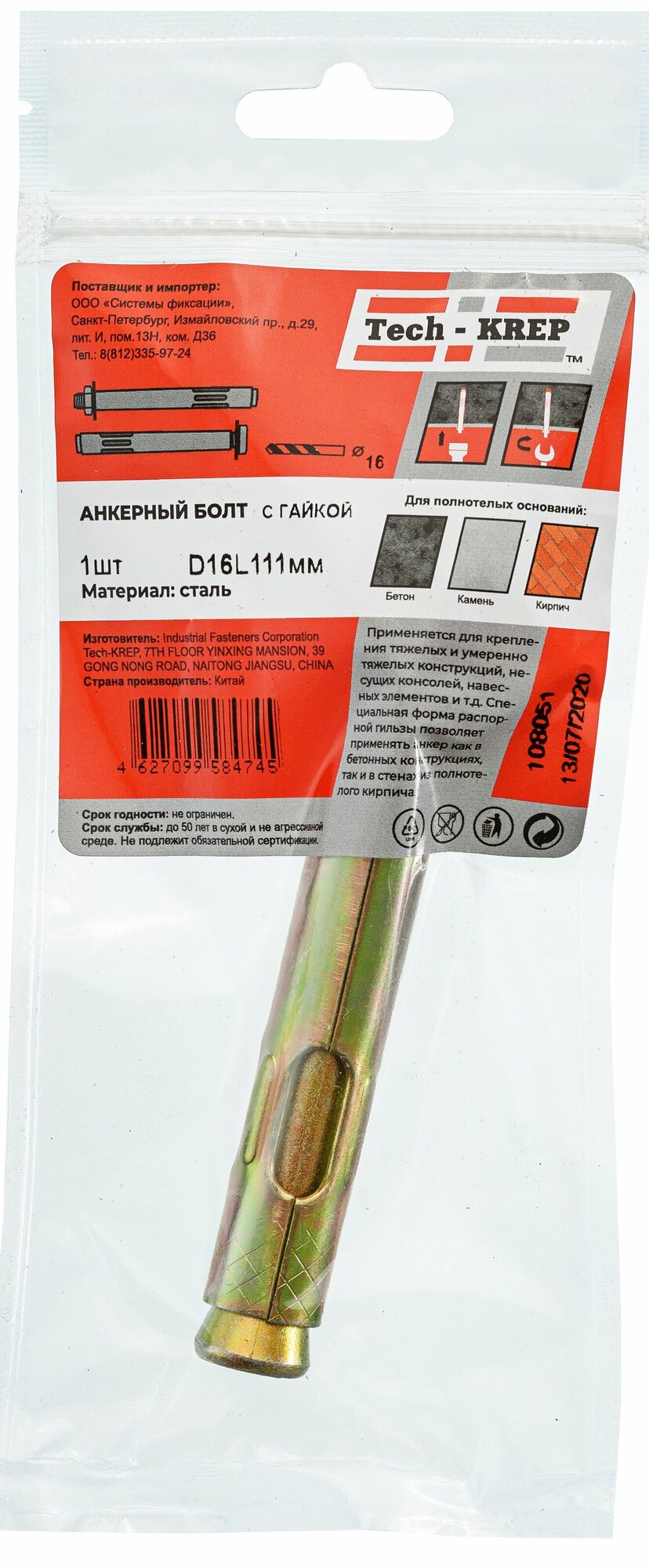 Tech-Krep Анкерный болт с гайкой 16x111 1 шт - пакет 108051 интересное: