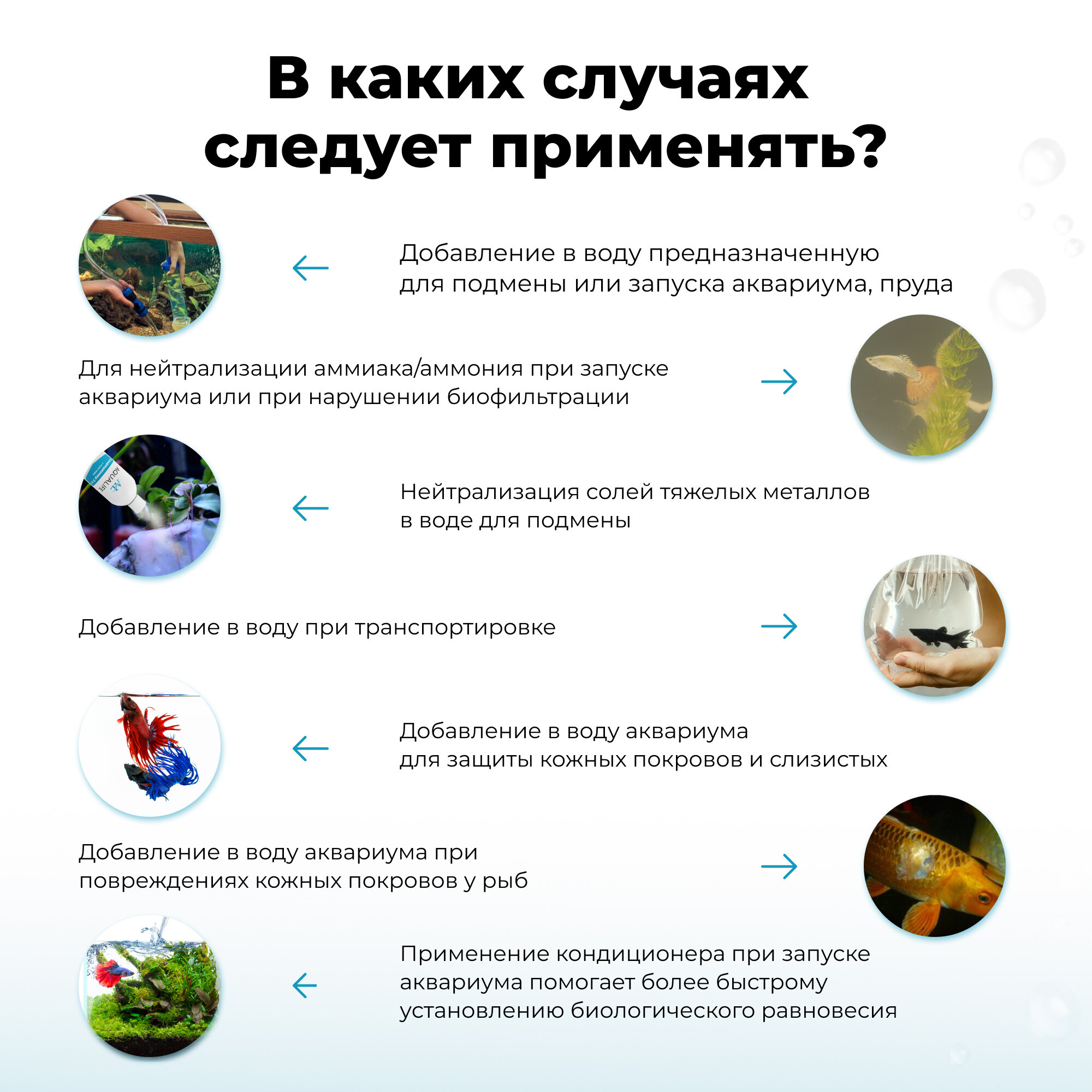 | Способ применения | 5 мл на 20 литров воды при каждой подмене воды |