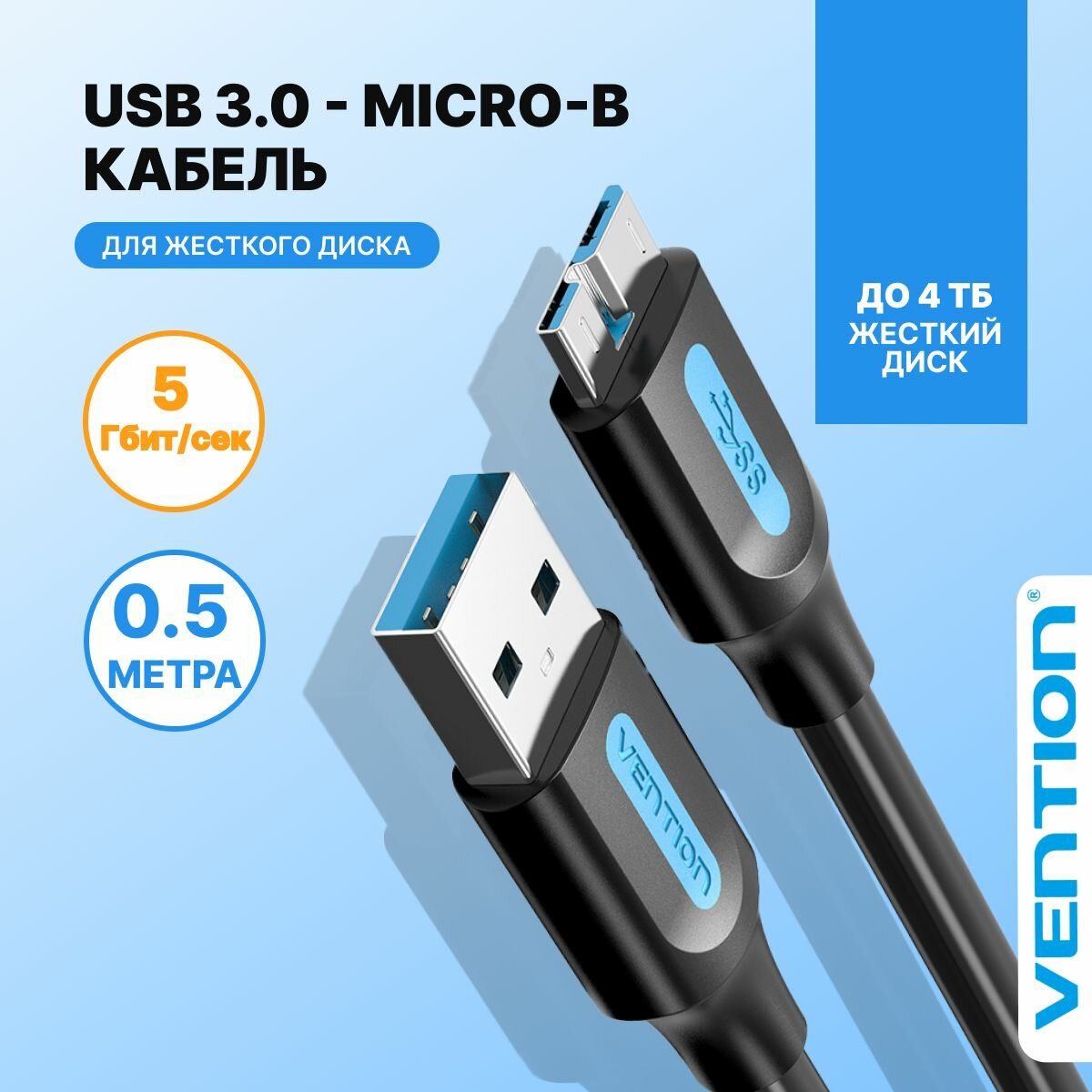 Кабель micro USB 3.0 AM (папа) / micro B (папа) длина 25 см Vention переходник для внешнего жесткого диска, арт. COPBC