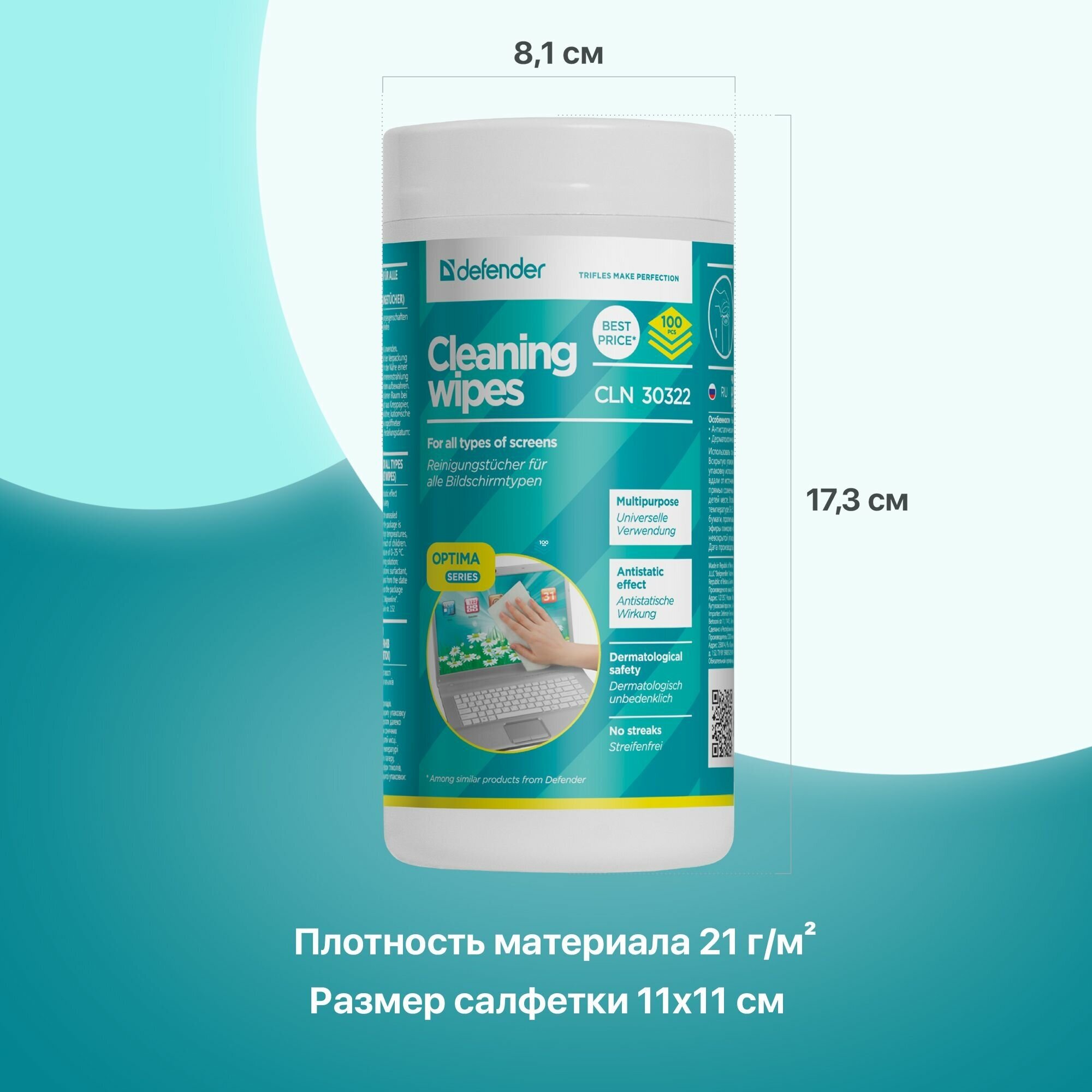 Влажные салфетки для техники Defender OPTIMA CLN 30322 интересное:
