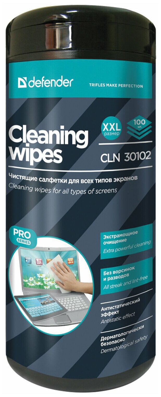 Чистящее средство Defender Чистящее средство влажные салфетки Defender 30322 в тубе, для ЖК-экранов (100шт./уп.) (ret)