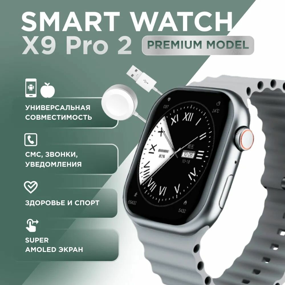 Смарт часы X9 Pro 2 мужские, женские, детские / Умные часы для детей Smart Watch 9 series электронные наручные фитнес 45 мм серебряные