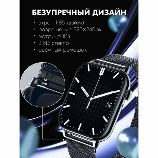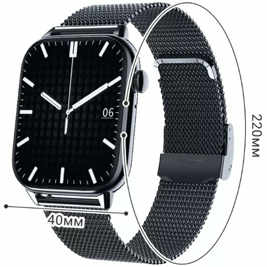 Умные часы ZDK HD11, с сенсорным экраном, цвет черный, 1.85 дюйма, с металлическим ремешком