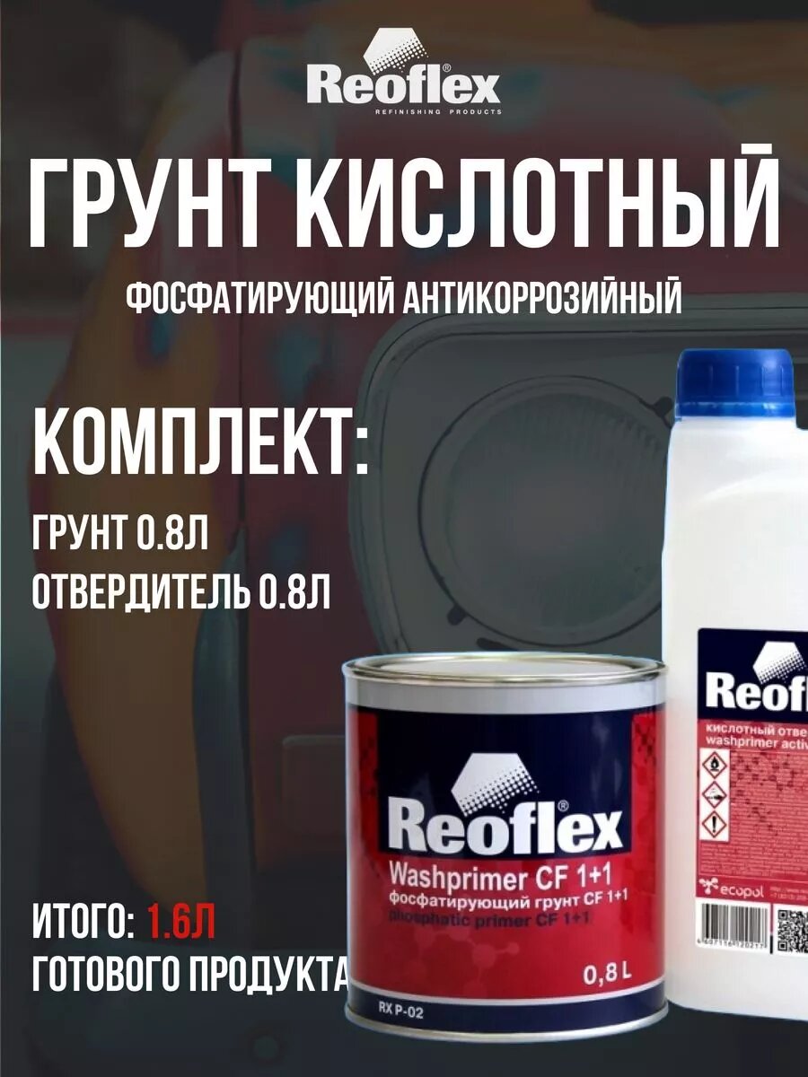 Грунт 2K фосфатирующий CF 1+1 желтый 1, 6л (0, 8л + 0, 8л) интересное: