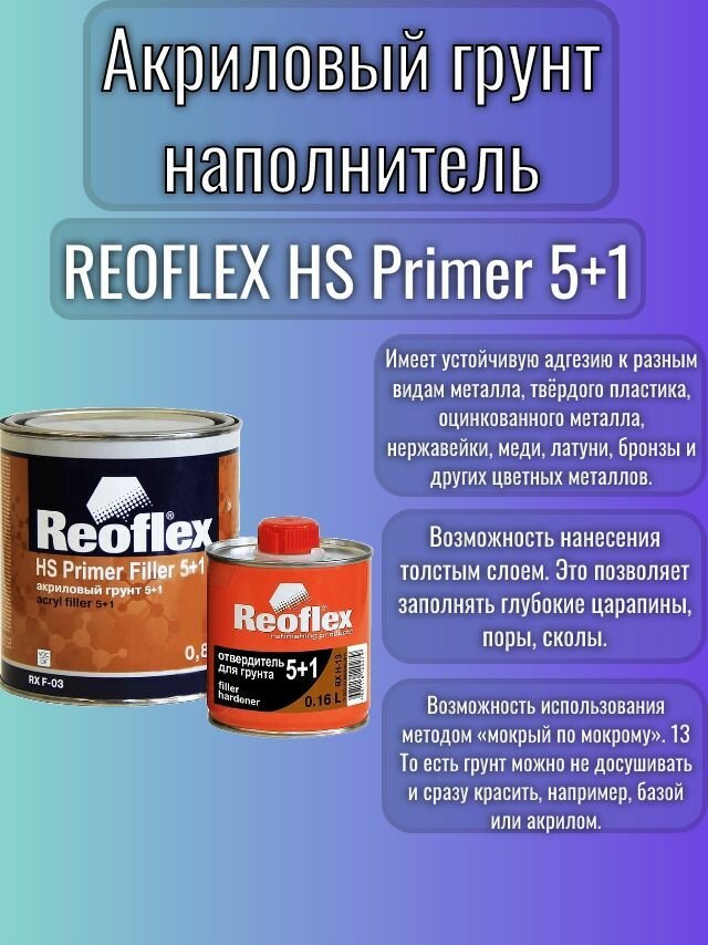 Акриловый грунт Reoflex 5+1 0.8 л, серый RX F-03 с отвердителем интересное: