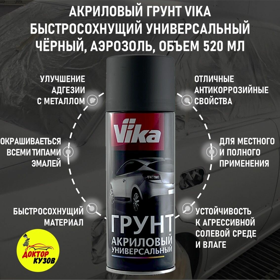 Грунтовка для автомобиля / Грунт для авто VIKA акриловый, черный, аэрозоль, объём 520 мл интересное: