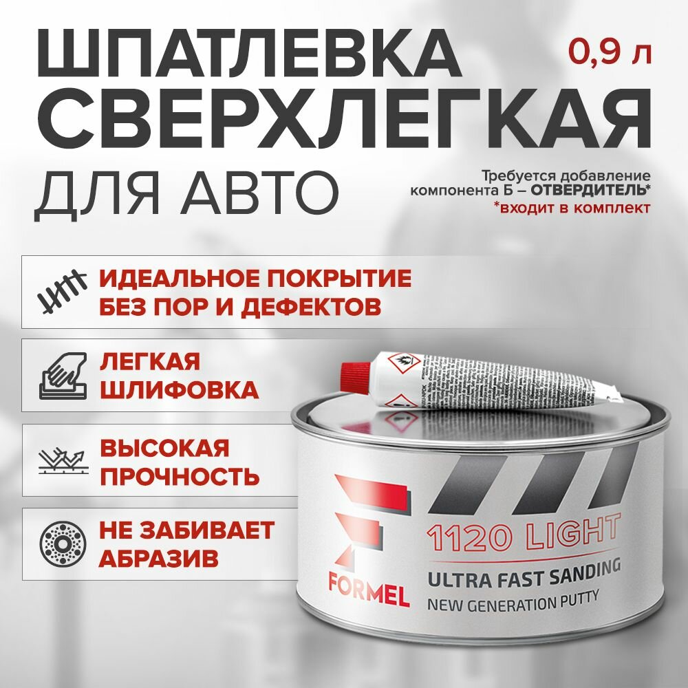 Купить Шпатлевка сверхлегкая для кузова автомобиля FORMEL 1120 0,9 л / 2К полиэфирная шпатлевка с отвердителем в комплекте