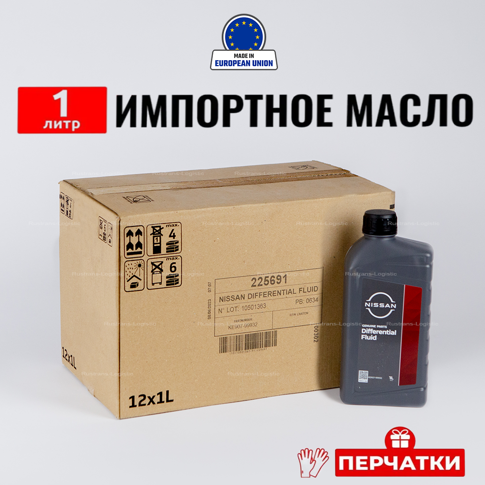 Купить Масло трансмиссионное Nissan Differential Fluid 80W-90 / GL-5 (Европа), (1л) + перчатки, масло МКПП 80w90 для применения в гипоидных передачах, дифференциалах Ниссан KE90799932, РТЛ