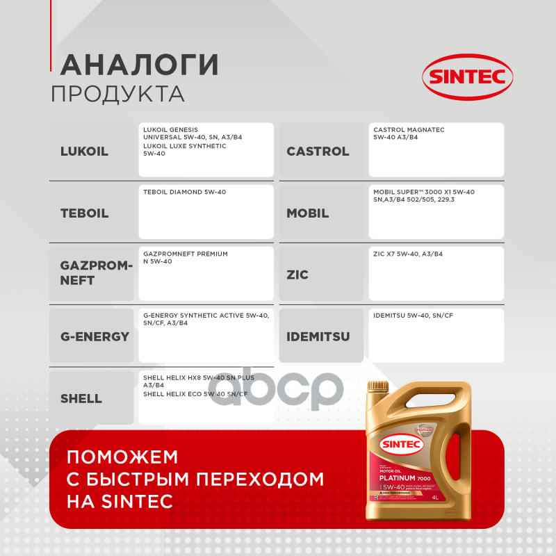 Ниже Вы можете прочитать отзывы на Акция! 4 Л + 1 Л В подарок Моторное масло SINTEC PLATINUM 7000 SAE 5W-40, API SN/CF, ACEA A3/B4 Синтетическое 5 л, ознакомится с подробными характеристиками, посмотреть интересные обзоры и фотографии на Акция! 4 Л + 1 Л В подарок Моторное масло SINTEC PLATINUM 7000 SAE 5W-40, API SN/CF, ACEA A3/B4 Синтетическое 5 л.