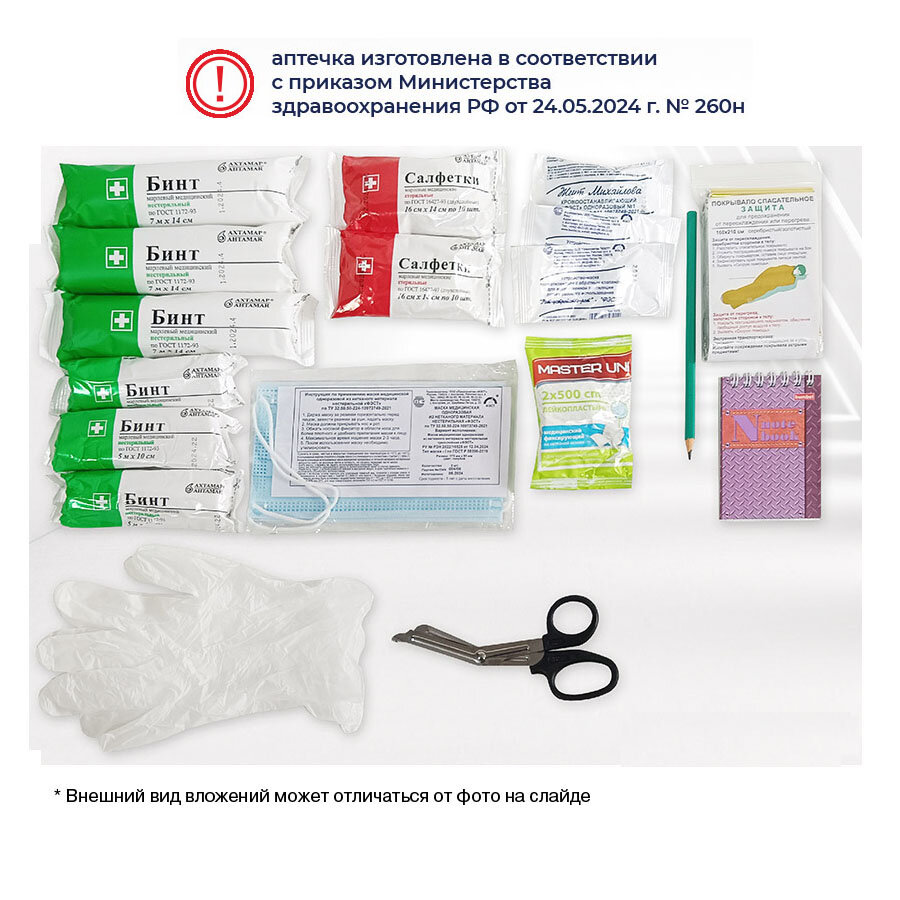 Аптечка для оказания первой помощи с применением медицинских изделий пострадавшим в дорожно-транспортных происшествиях (автомобильная) "Муссон" (приказ 260н) интересное: