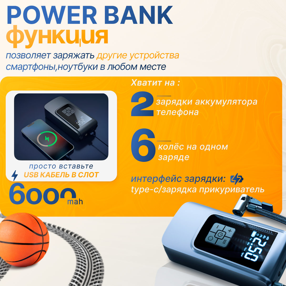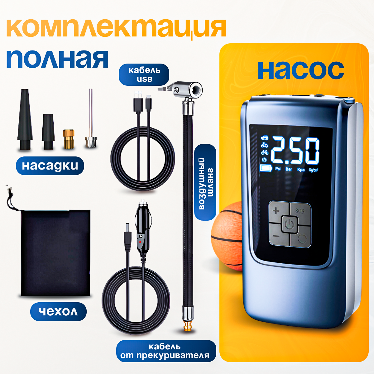 | В наборе | кейс для хранения / комплект насадок / переходник для велосипедных шин / переходник для лодок / переходник для матрасов / переходник для мячей / сумка для хранения / фонарь |