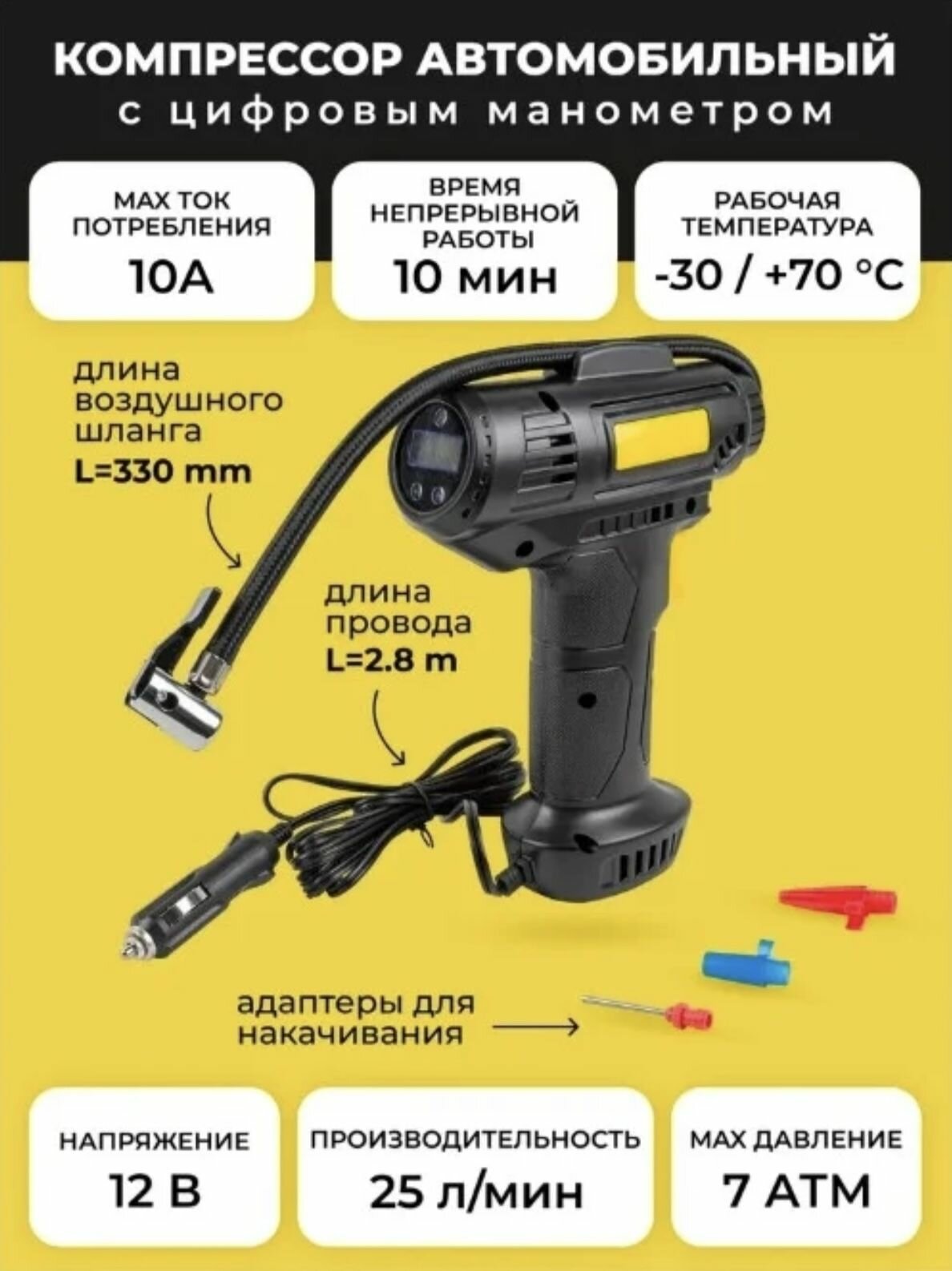Компрессор автомобильный проводной от прикуривателя портативный / Насос электрический поршневой интересное: