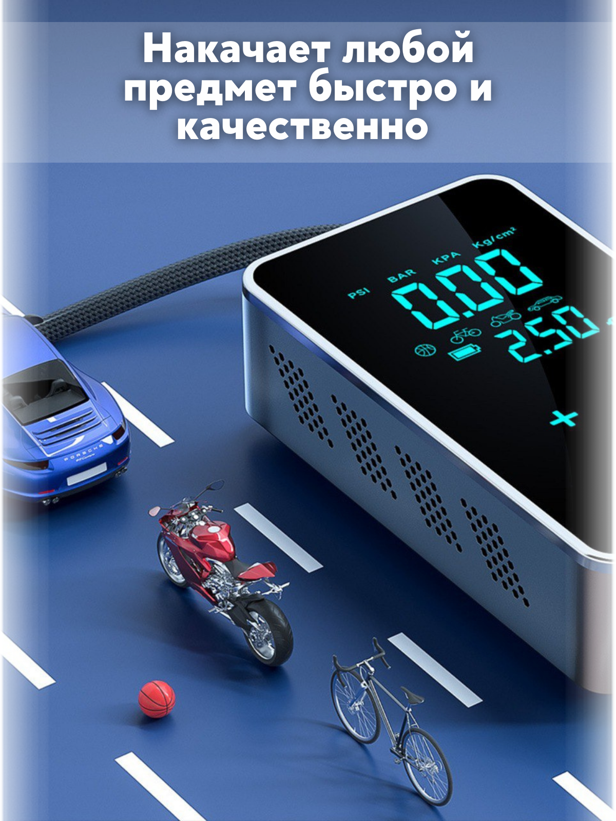 Портативный насос Eplutus Mod: EL01 (S19447EPL) для велосипеда, самоката, мяча, мотоцикла и автомобиля. Велосипедный компресcор для мяча и автомобил