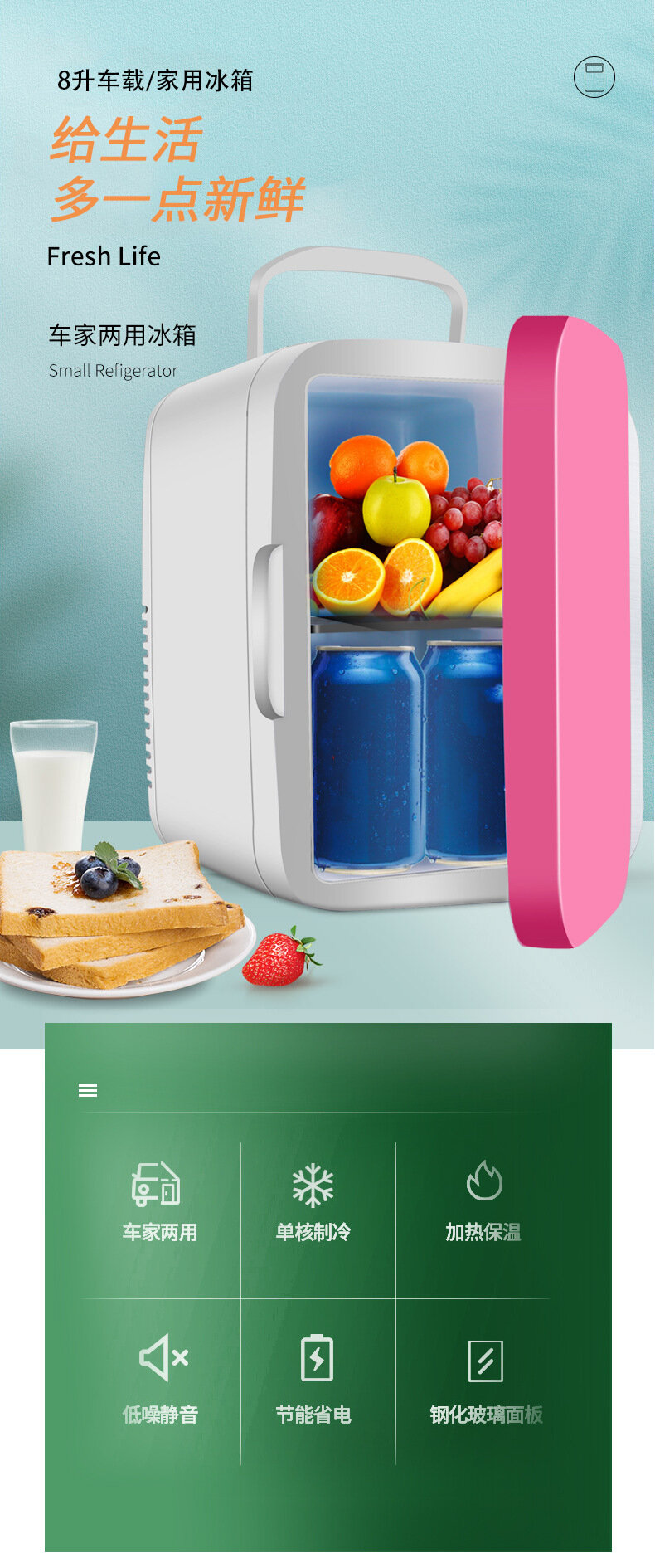 Автомобильный холодильник, 12В, 8л, для дома и авто, розовый
