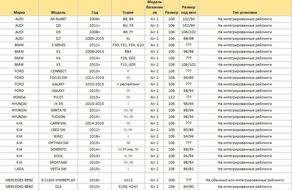 | Установка | на интегрированные рейлинги |