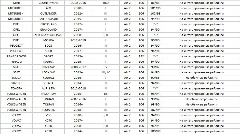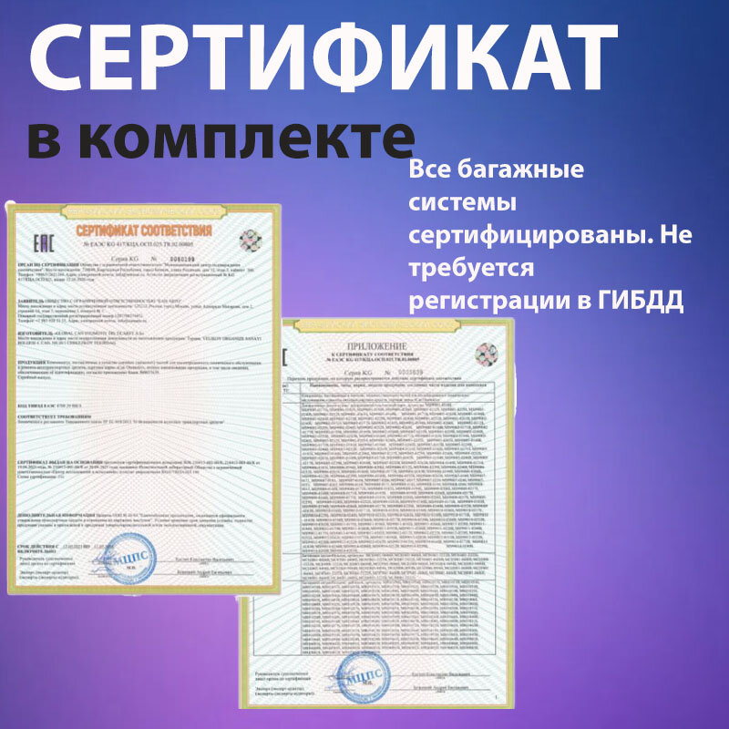 | Подробная комплектация | *4 опоры *2 металлические дуги в черном пластике прямоугольного сечения *комплект крепежа *Инструкция *Сертификат |