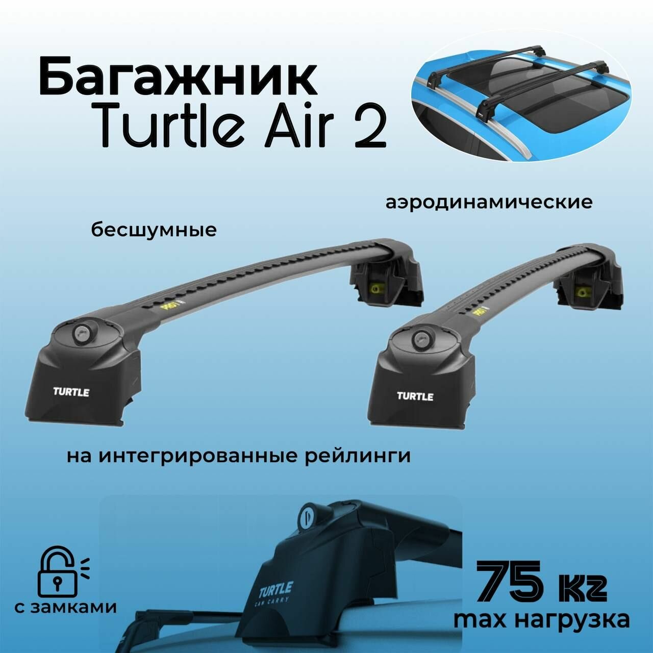 Багажник на крышу Turtle Air 2 Black для Haval Jolion (Хавал Джолион) 2021-, на интегрированные рейлинги, черный, с замками, аэродинамический. интересное: