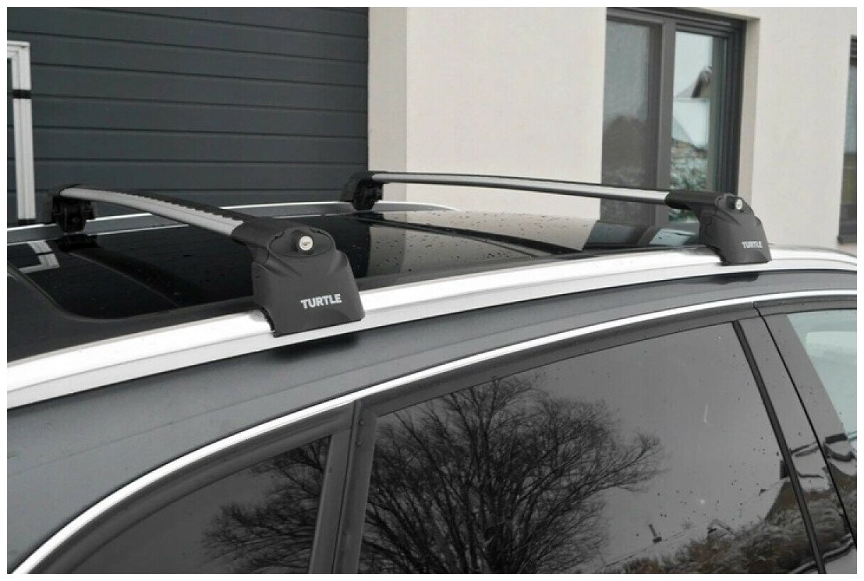Багажник на крышу Turtle Air 2 Silver для Haval Jolion (Хавал Джолион) 2021-, на интегрированные рейлинги, серый, с замками, аэродинамический. интересное:
