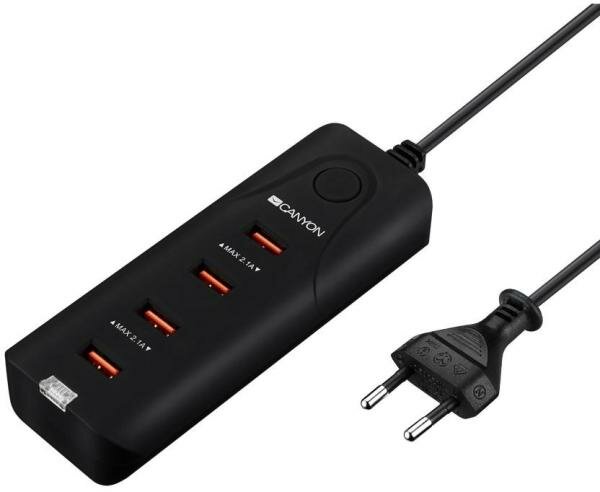 Сетевой адаптер Canyon H-09, 4 USB, 4.2 А, 21 Вт, 5 В, защита от замыкания, черное