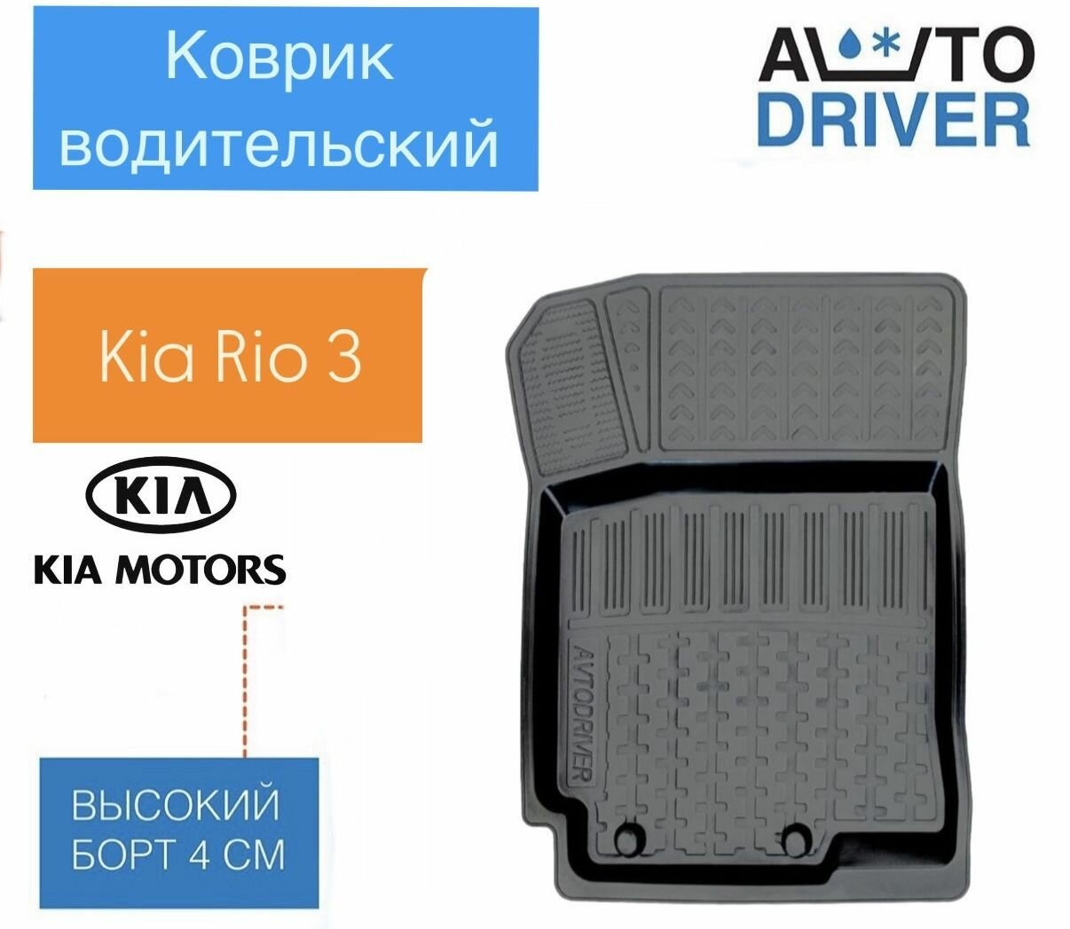 Резиновый водительский коврик на Киа Рио/kia rio, Hyundai Solaris/ Хендай Солярис с 2011-2017 интересное: