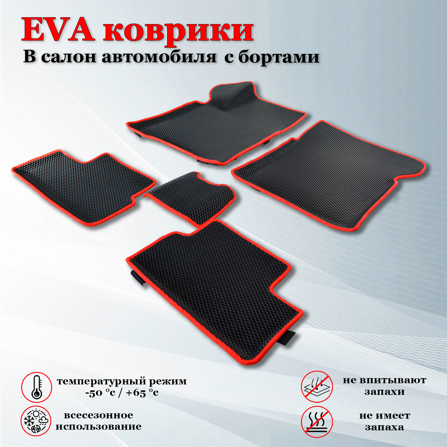 Купить EVA (EВА, ЭВА) коврики с бортами в салон автомобиля ВАЗ 2108/ ВАЗ 2109/ ВАЗ 21099/ ВАЗ 2113/ ВАЗ 2114/ ВАЗ 2115 черные/красный кант