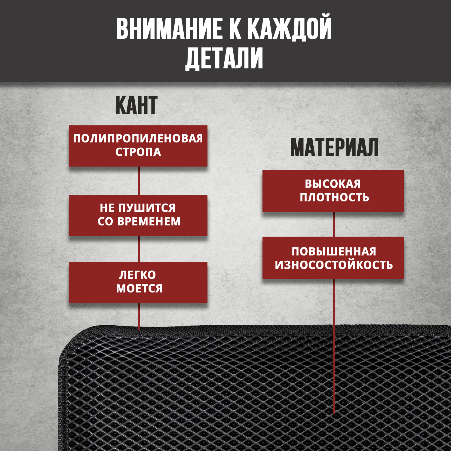 | Подробная комплектация | Автомобильные коврики ЕВА (EVA) 3D с бортами для Чери Тиго 7 Про / Chery Tiggo 7 Pro (2020 -2023) - 5 шт .: 2 - передних коврика , 2 -задних коврика , 1 - перемычка . |