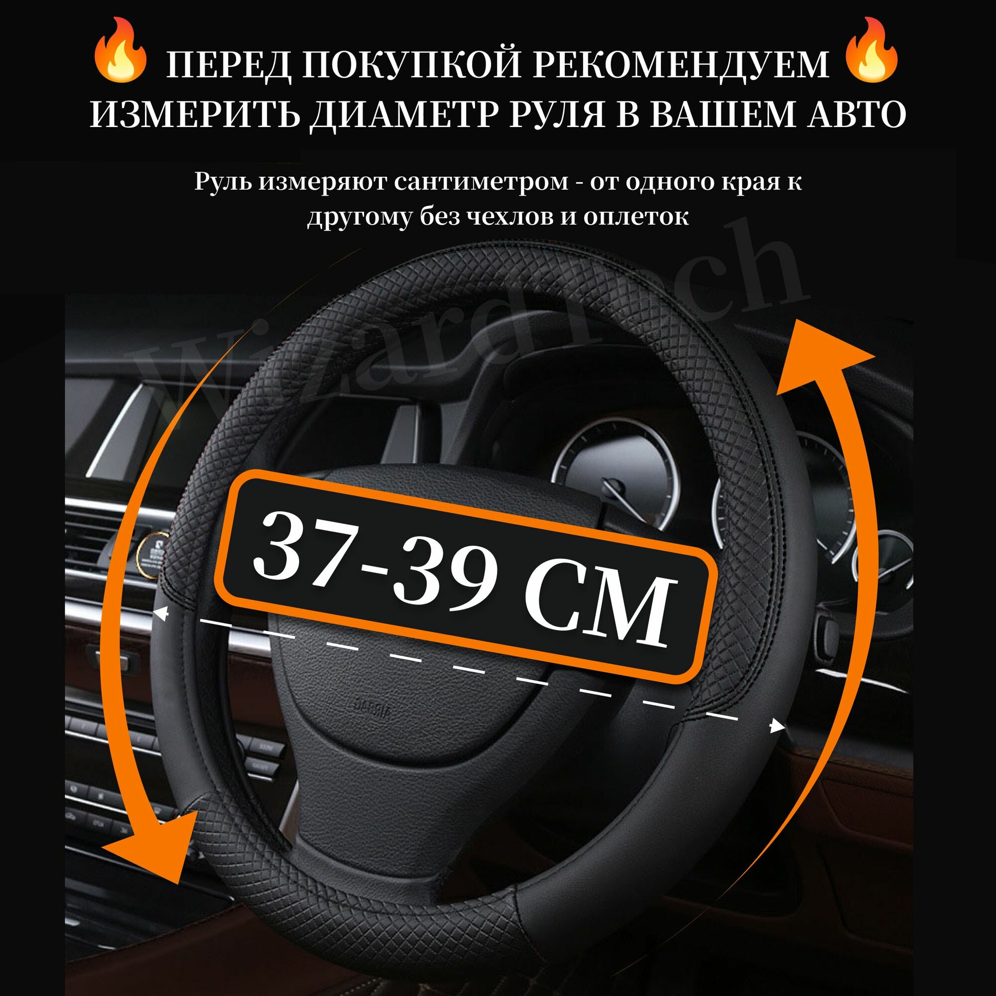 Оплетка чехол на руль автомобиля универсальная накладка из экокожи 37-39 см черная с чёрной ниткой интересное:
