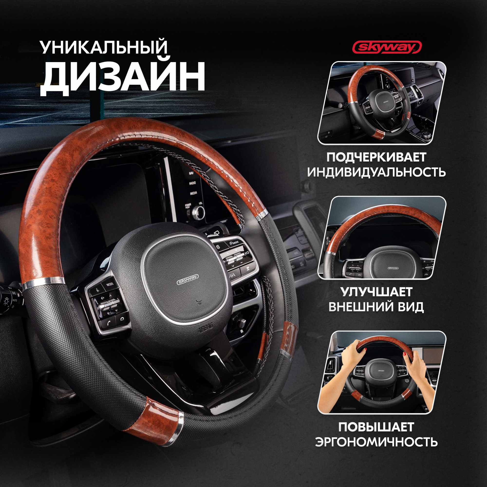 Оплетка экокожа M Wood- 8 SKYWAY Черно/Коричневая (S01102058) интересное: