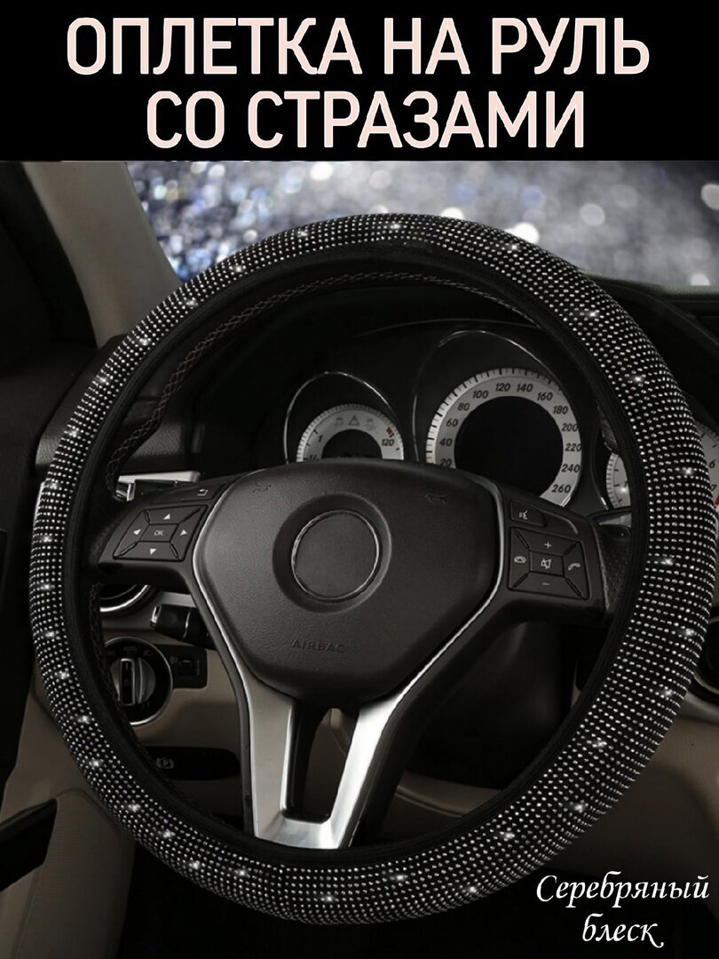 Оплетка руля GREATGOODS, велюр, со стразами, диаметр 38см, серебристая