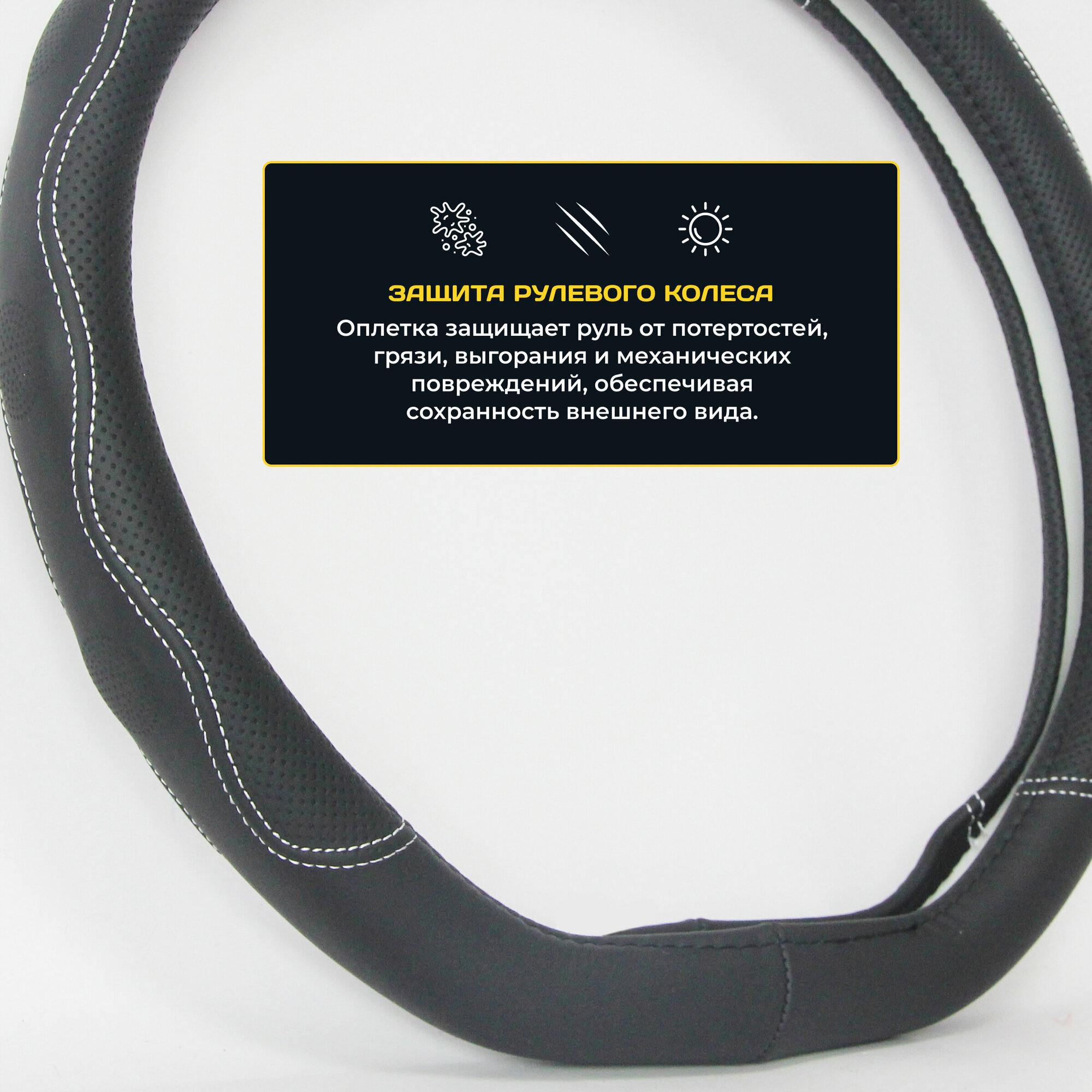 Оплетка на руль Top-12 SKYWAY M (37-39) серый экокожа, S01102501