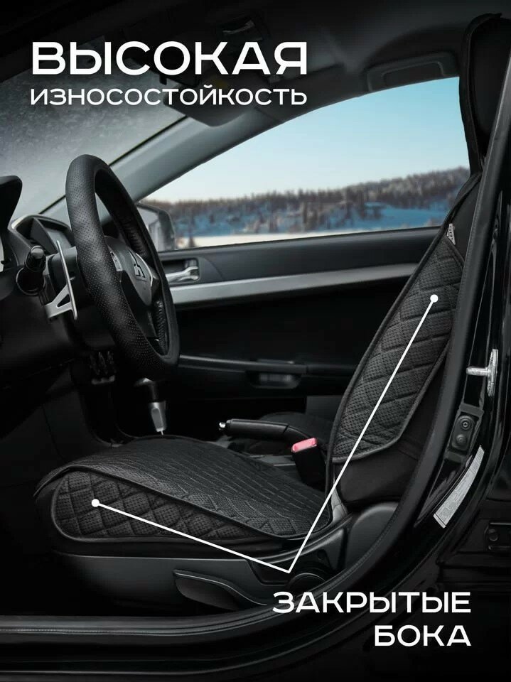 Накидка на передние сиденье 2 шт на сиденье автомобиля черная с черной нитью жакард с защитой боковин интересное: