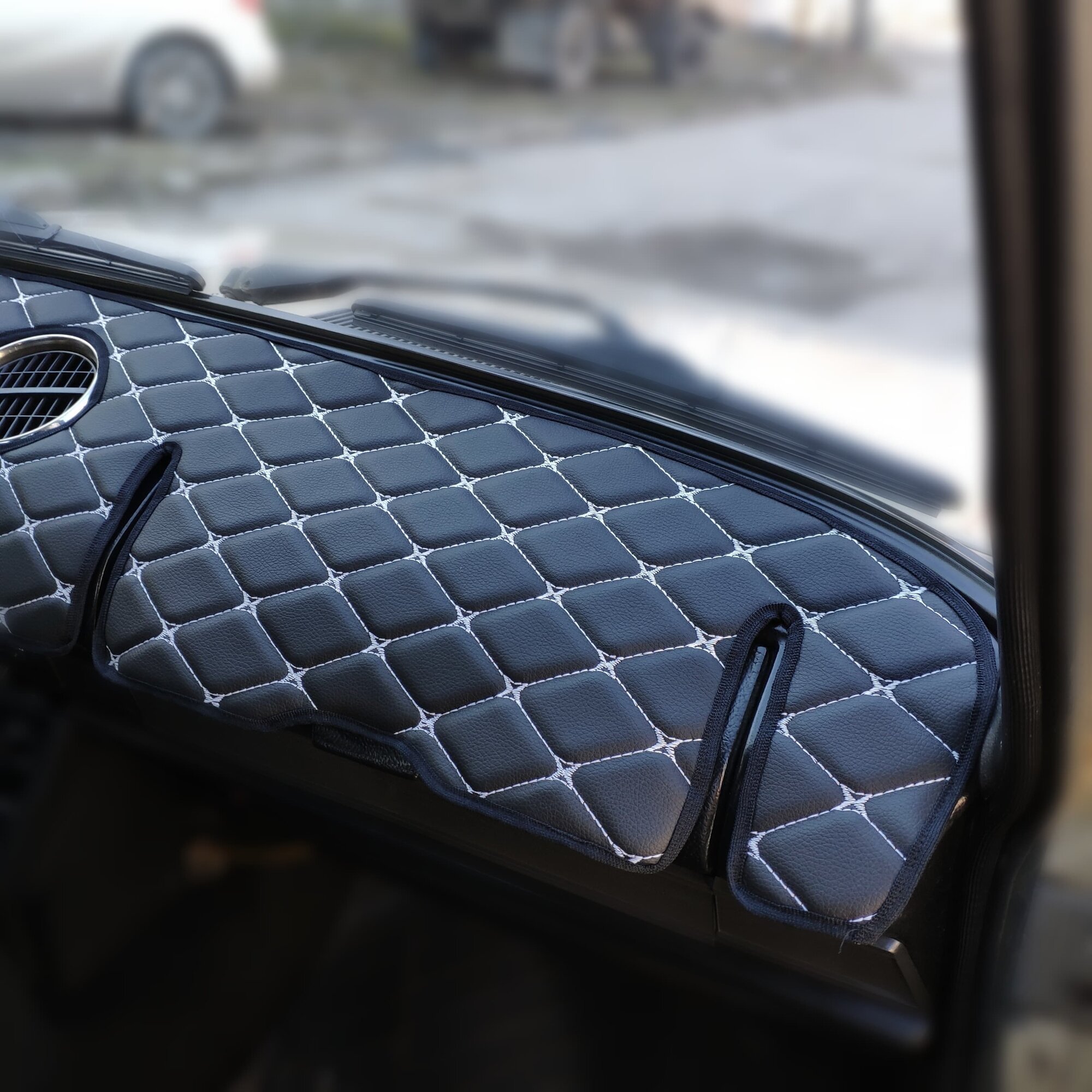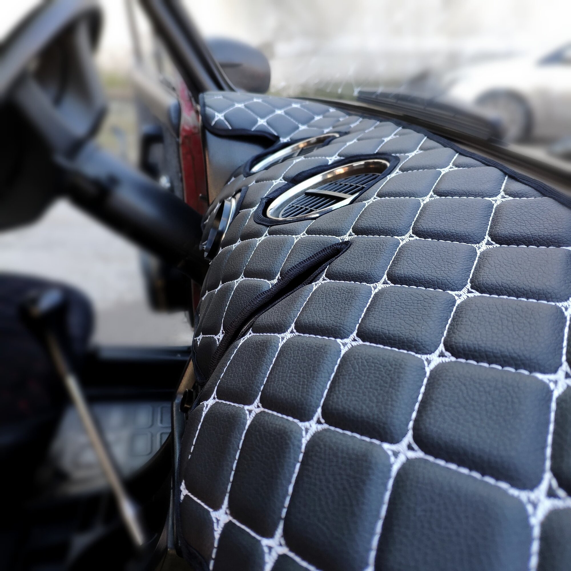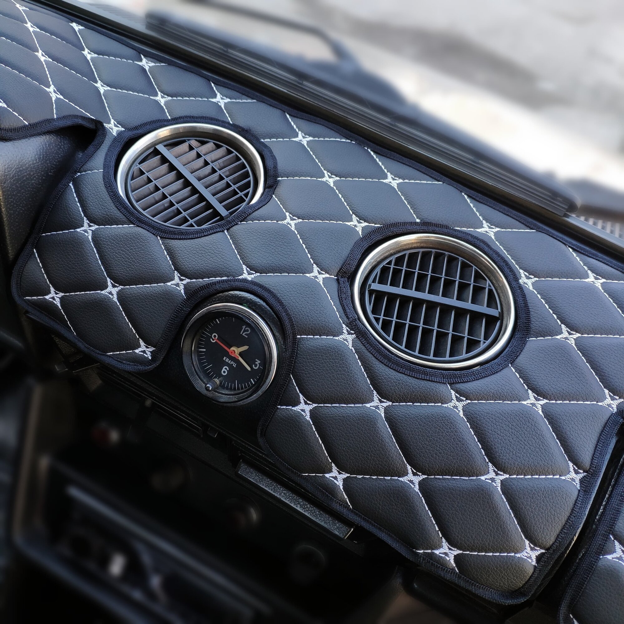 Накидка на панель ВАЗ 2106 из стеганной экокожи черной с Белой прострочкой интересное: