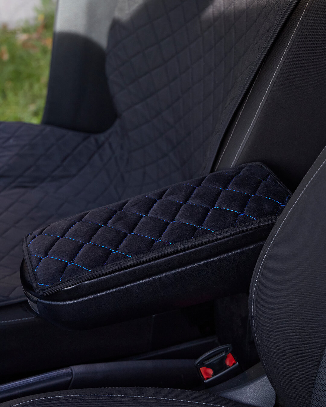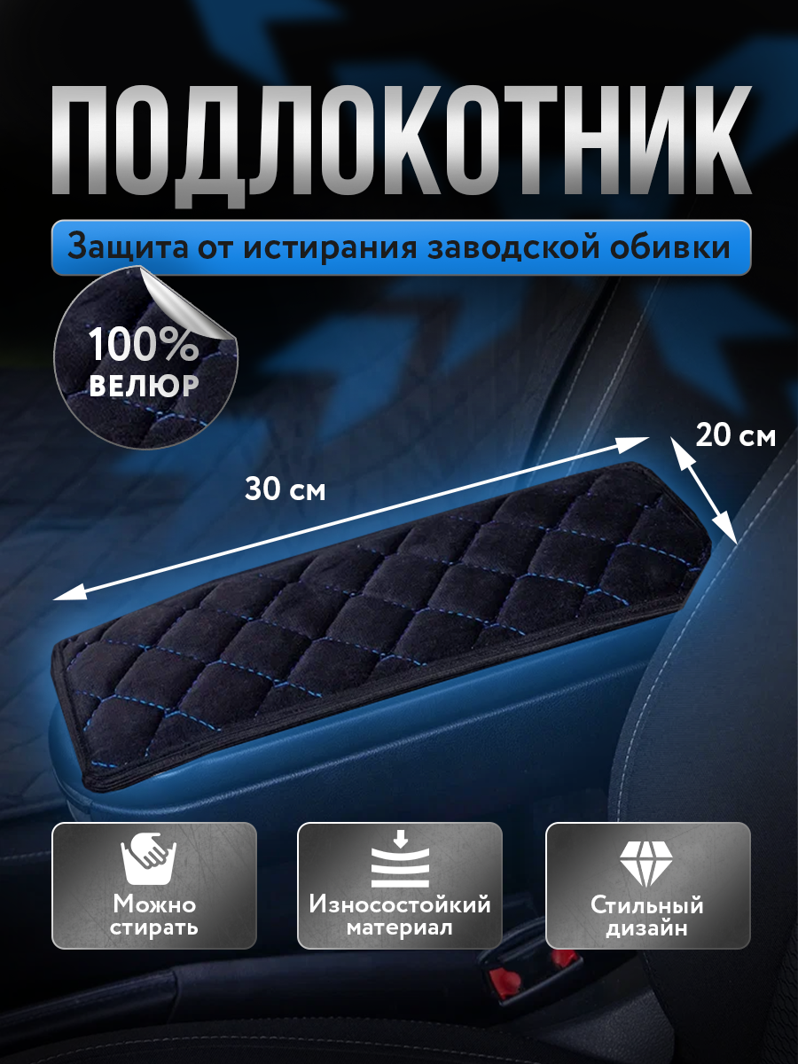 Чехол на подлокотник из велюра 20*30см с синей строчкой интересное:
