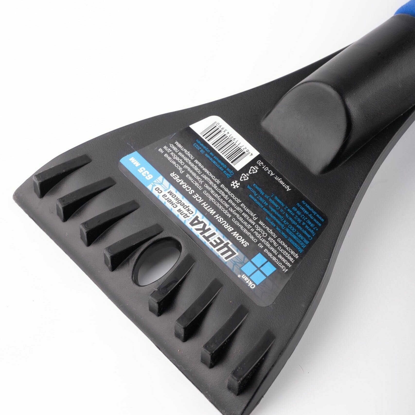 Щетка автомобильная для чистки снега и наледи со скребком OKTAN длина- 635 мм. с синей щетиной А3-01-20. (пластик/каучук).