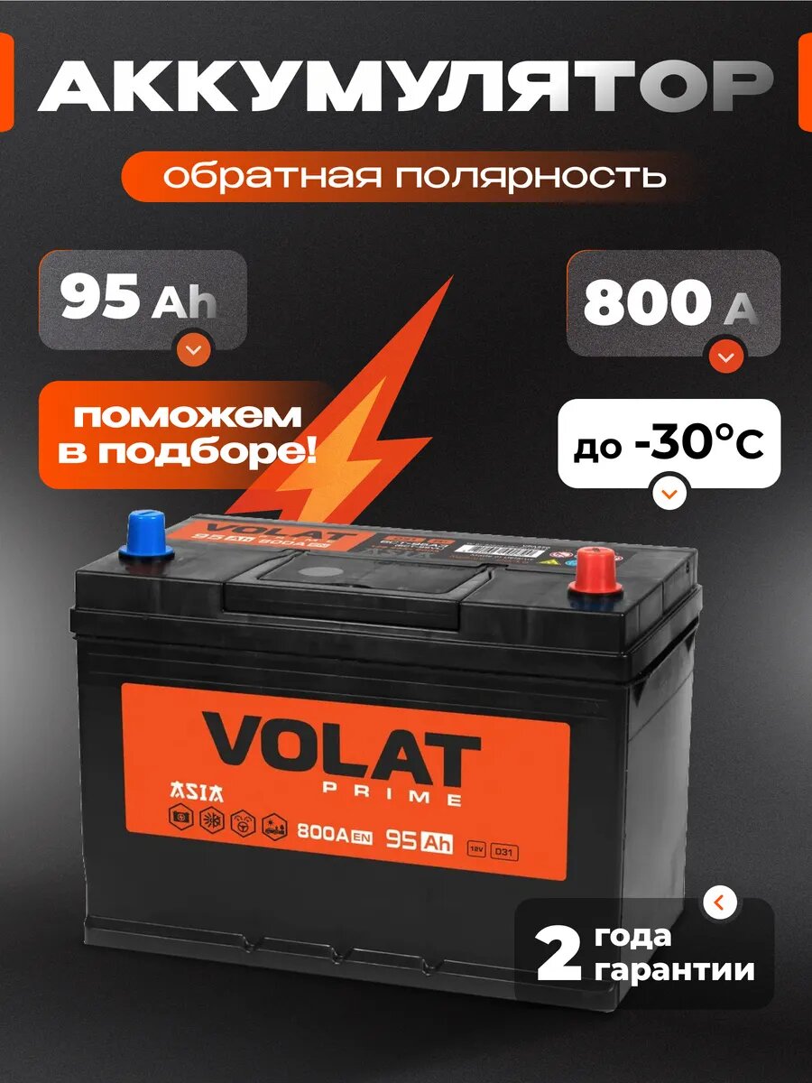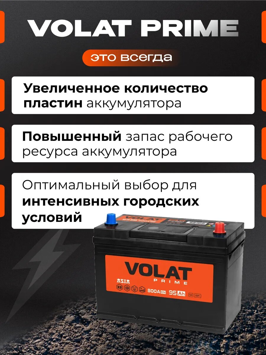 Аккумулятор автомобильный VOLAT Prime Asia (нижний борт) 95 Ah 800 A прямая полярность 303x175x225