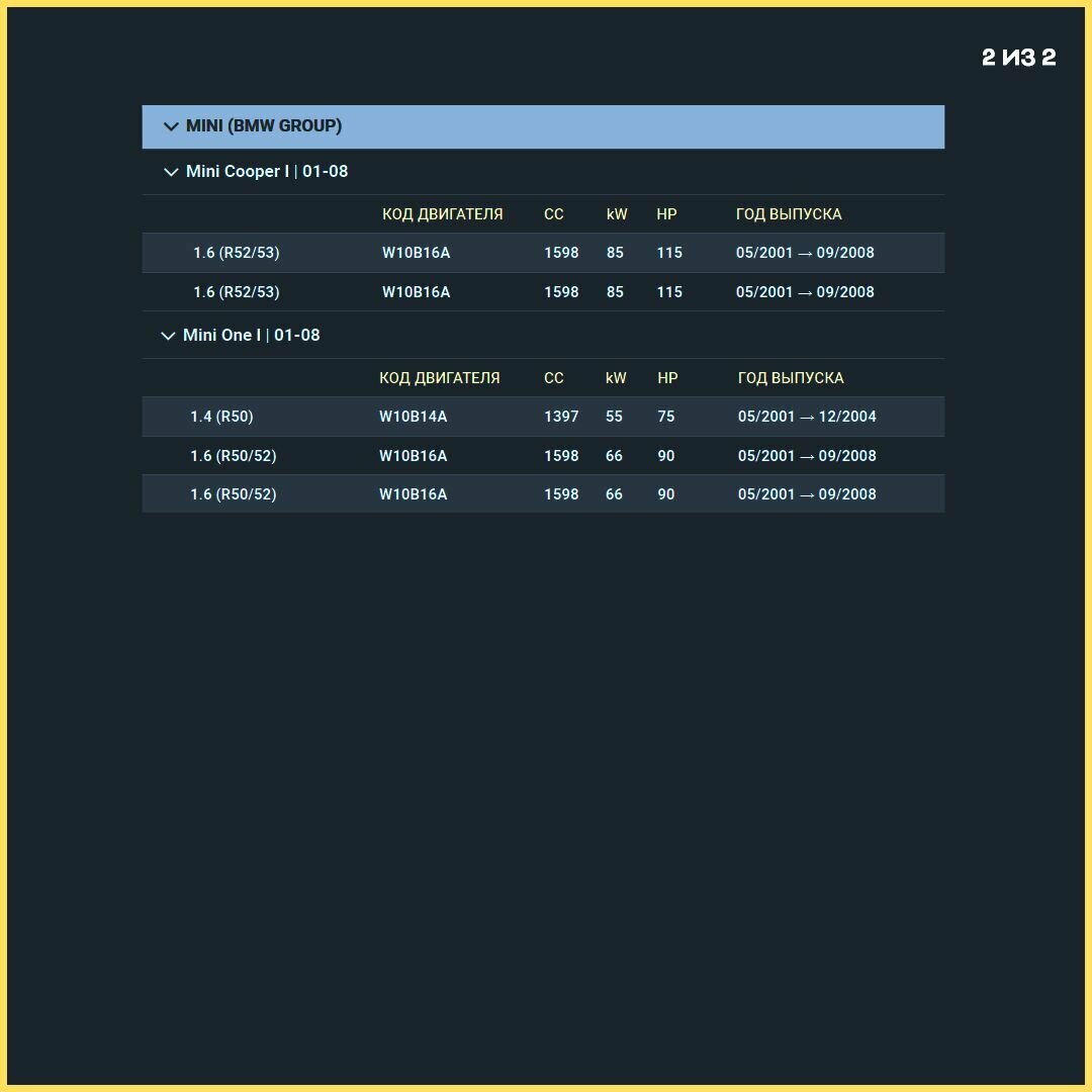 | Модель автомобиля | Ford Fiesta V / Ford Fusion / Mazda 2 / Mini Cooper / Mini One |