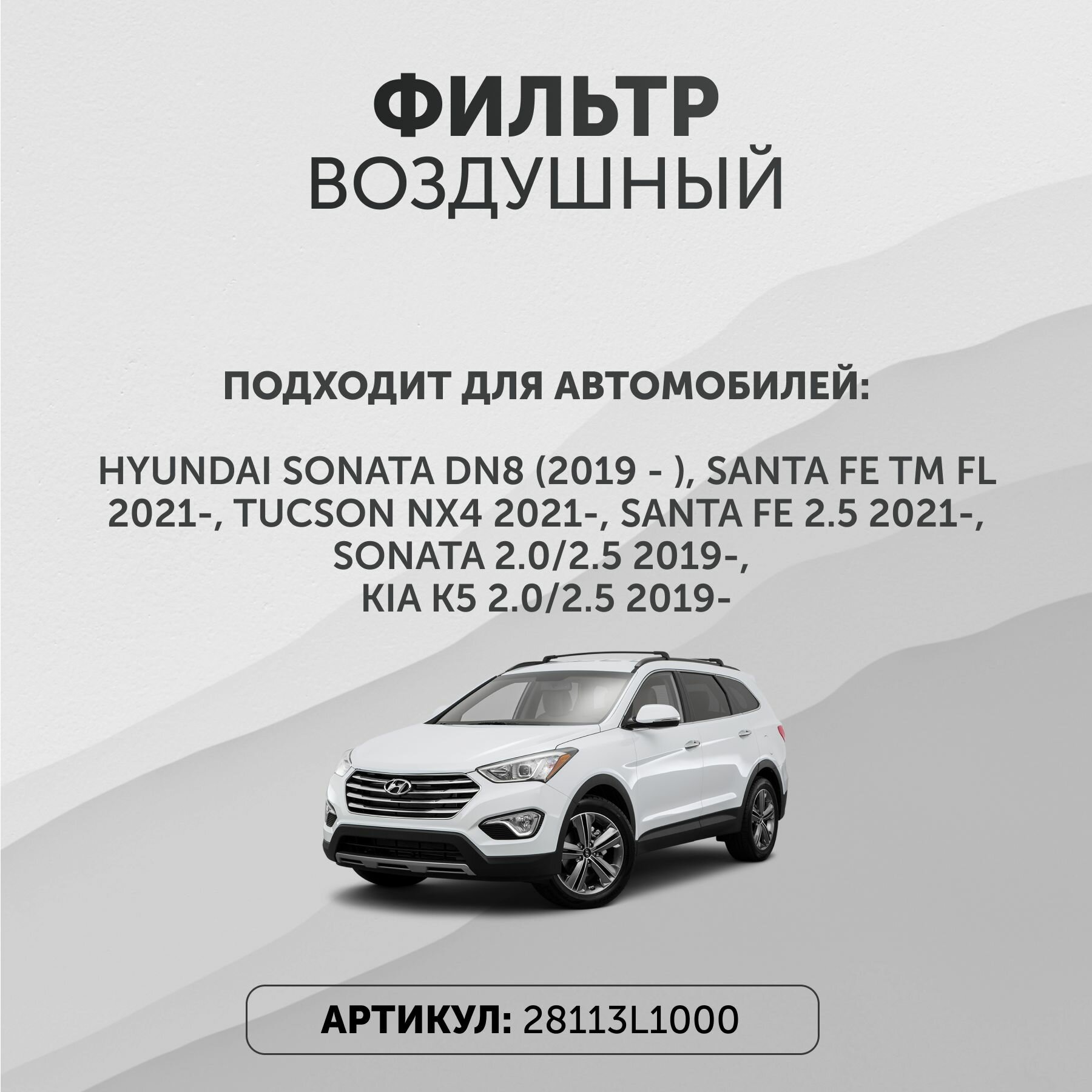 | Модель автомобиля | Hyundai Santa Fe / Hyundai Sonata / Hyundai Tucson / Kia Carnival / Kia K5 / Kia Sorento / Kia Sportage |