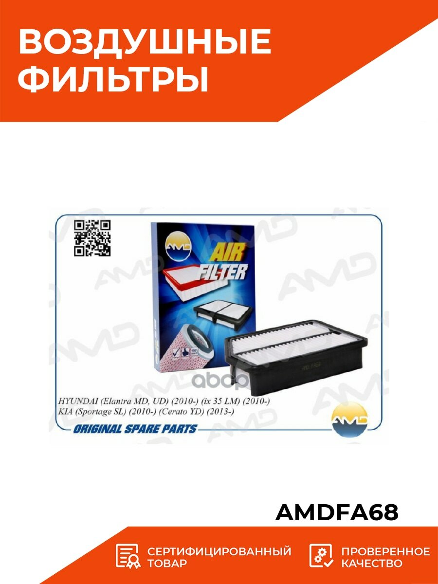 Фильтр воздушный 281133X000 AMD.FA68 для HYUNDAI Elantra MD, UD ix 35 LM KIA Sportage SL Cerato YD интересное: