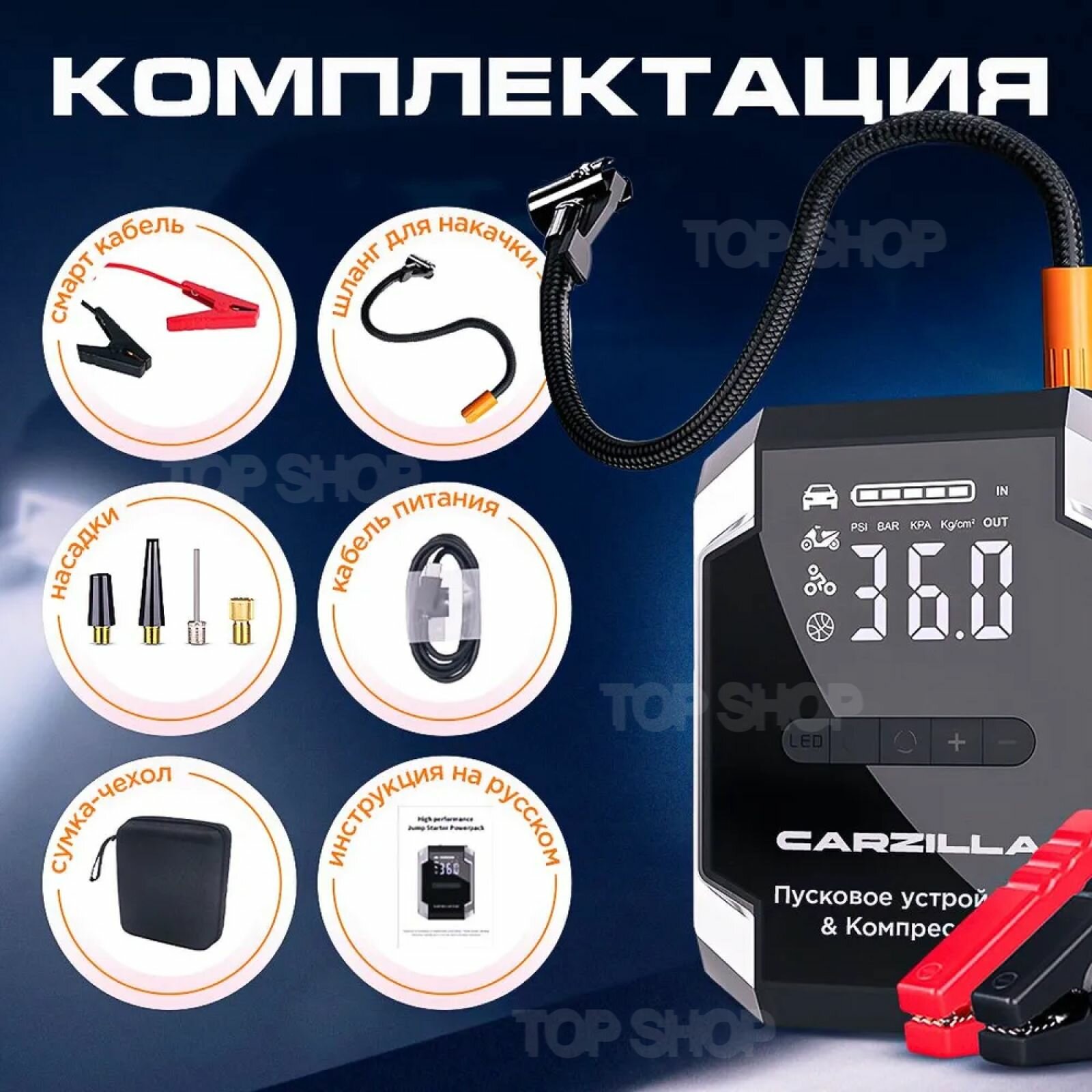 Купить Пусковое устройство для автомобиля Carzilla / 20 000 мАч, пусковой ток 3000А / 4в1: ПЗУ, компрессор, powerbank, LED-фонарь