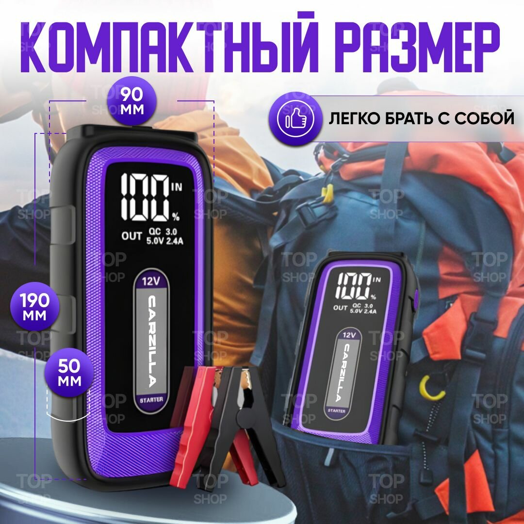 Пусковое зарядное устройство 4000 A / бустер автомобильный с аккумулятором на 26800 мАч и LED-фонарь / Carzilla A6