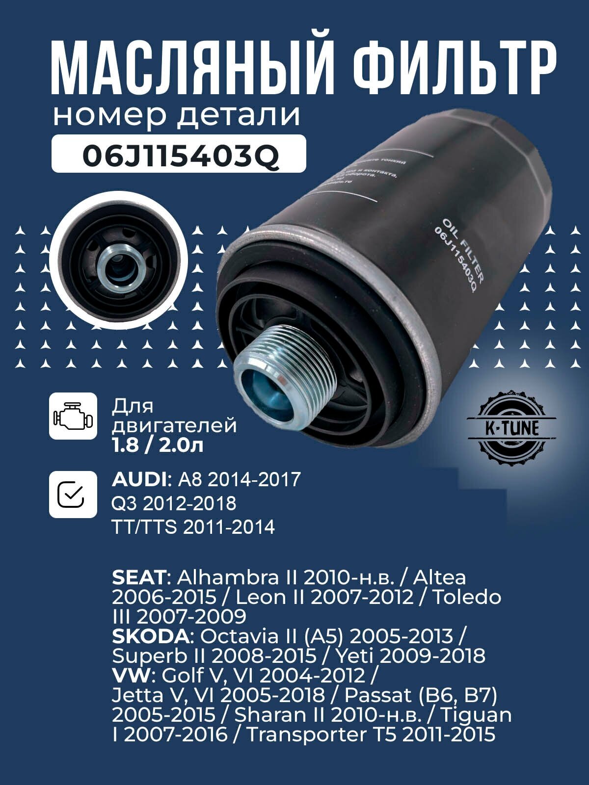 Масляный фильтр K-Tune для VAG 06J115403Q для Audi A8/TT/Q3; Skoda Octavia/Superb; VOLKSWAGEN Golf/Jetta/Passat с двигателем 2.0 интересное: