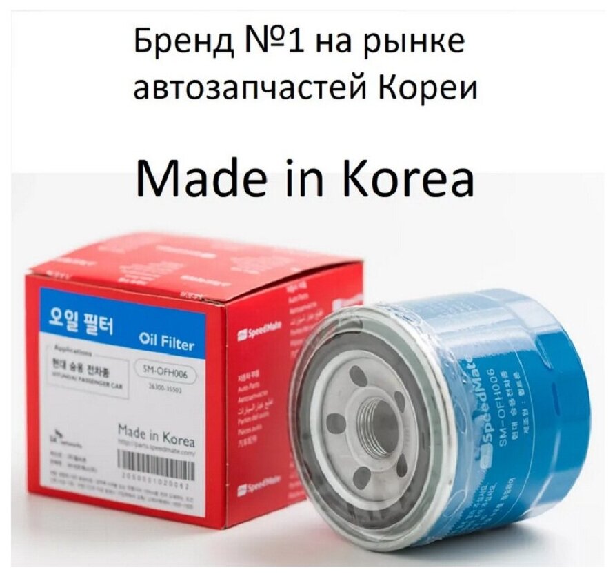 Маслянный фильтр SpeedMate 2630035503 (Solaris, Creta, Sonata, Accent, Rio) SM-OFH006 интересное: