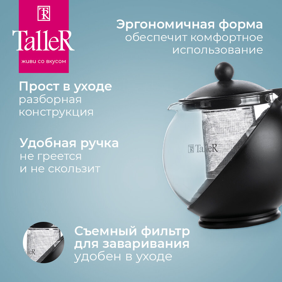 Чайник заварочный 1.25Л съемный фильтр TALLER
