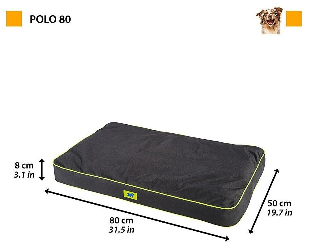 Подушка для собак, POLO, размер 80, черная, со съемным непромокаемым чехлом, нейлон, 80 х 50 х 8 см