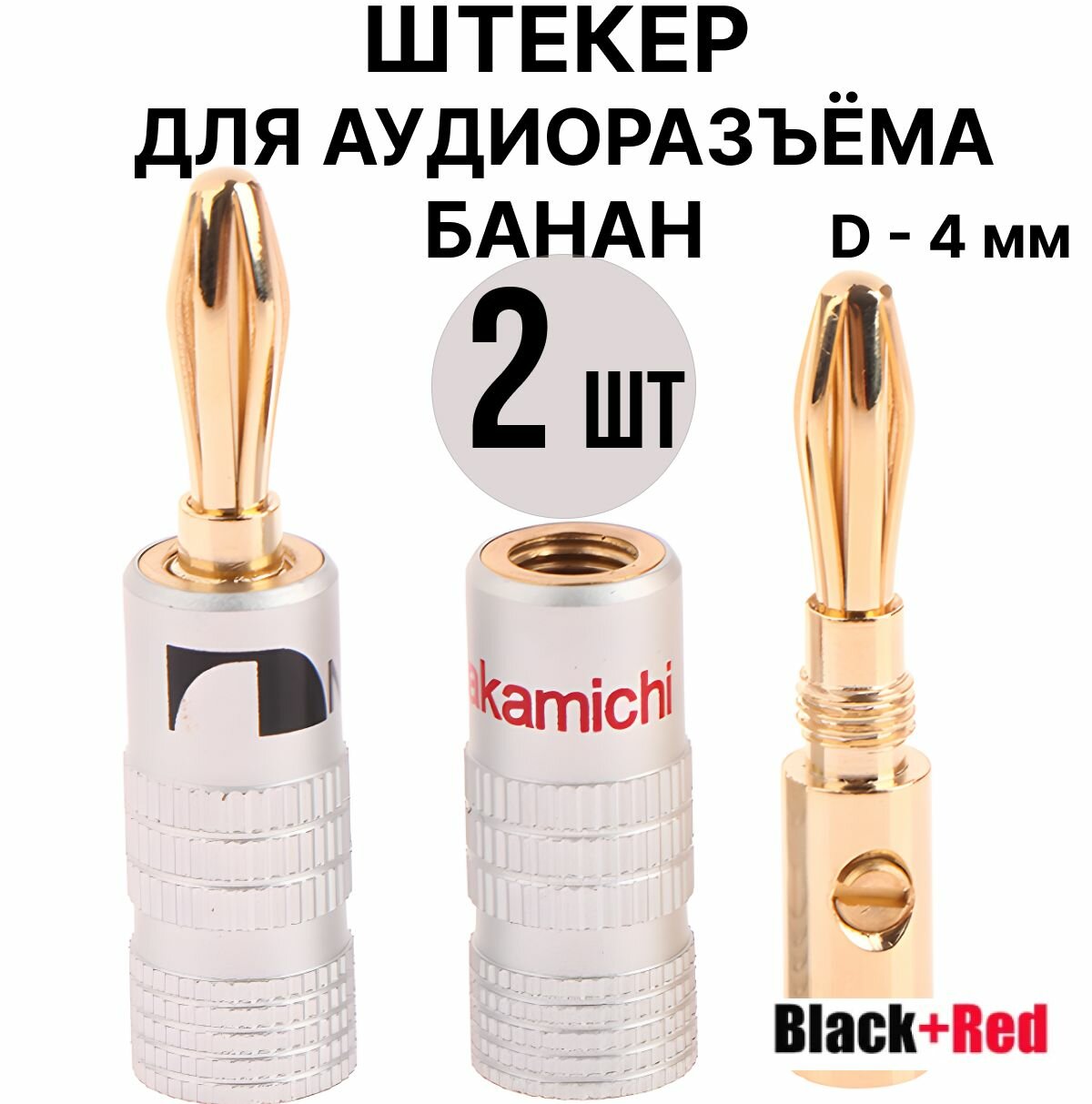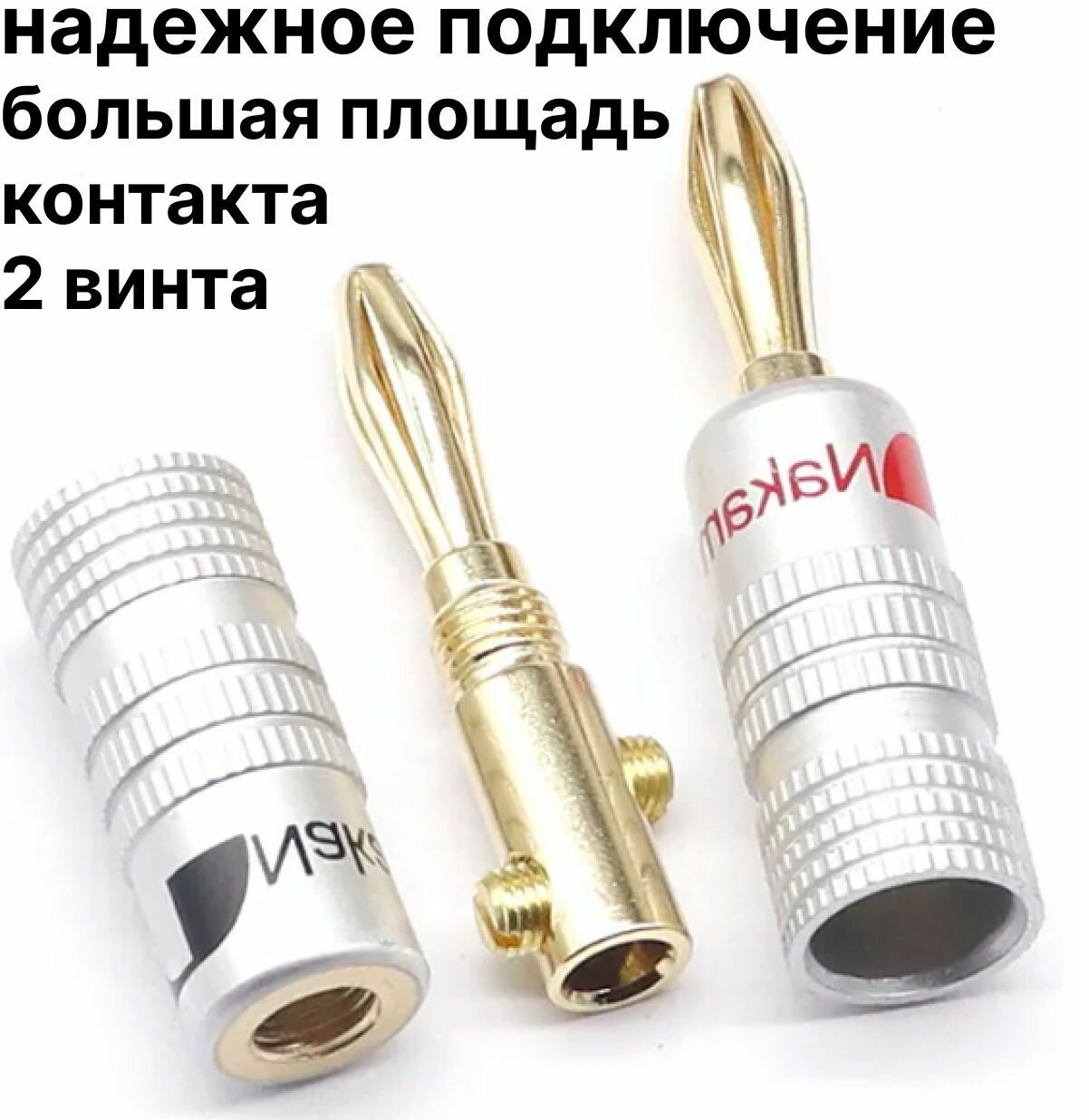 Купить Разъём типа "Банан" 4 мм, акустический разъем. Штекер для акустики Nakamichi 24K 4мм позолоченный медный разъем BFA для колонок, 2 штуки