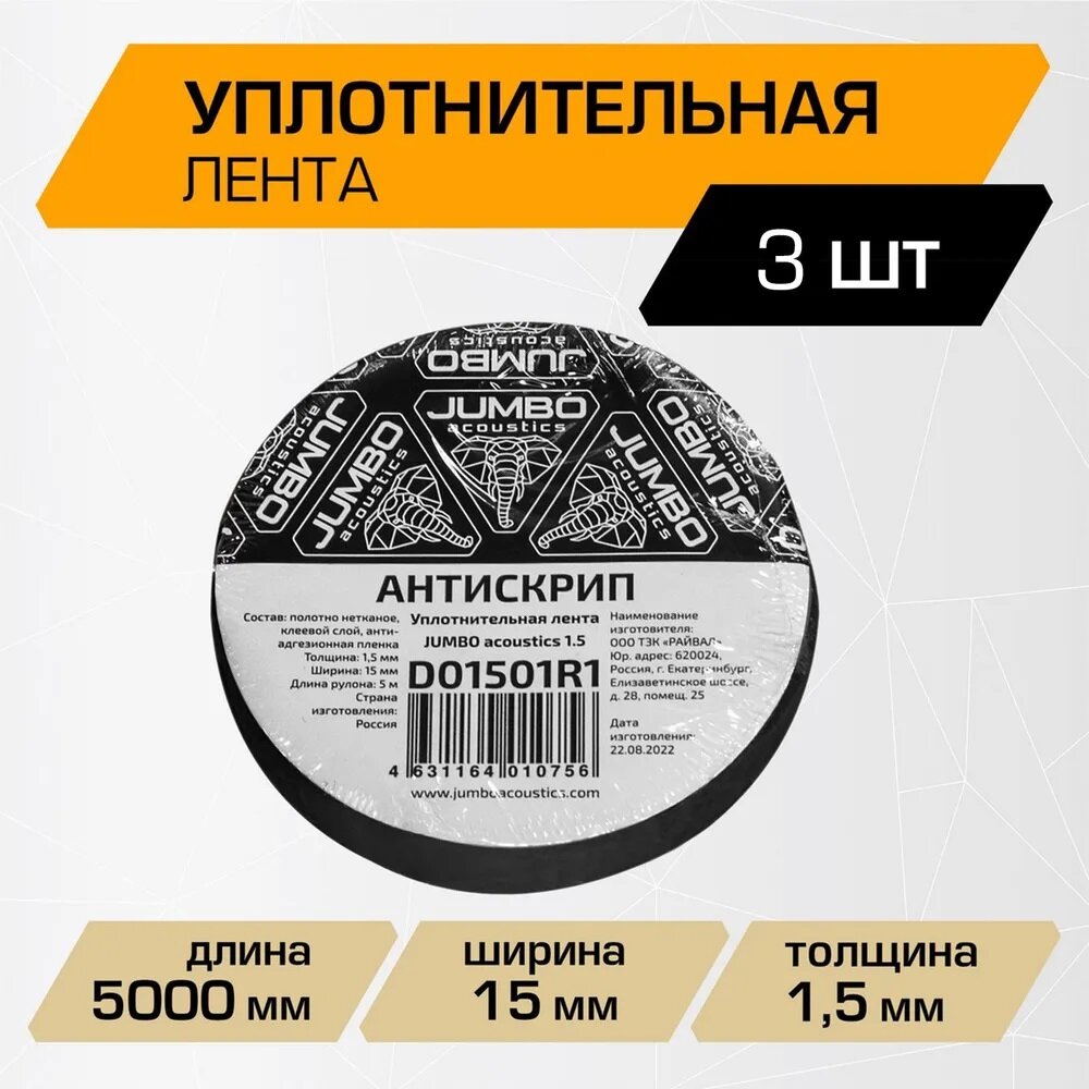 Купить Уплотнительная лента маделин, антискрип для автомобиля, липкая лента, шумоизоляция, JUMBO acoustics 1.5Х15, 3шт, D01501R1.3