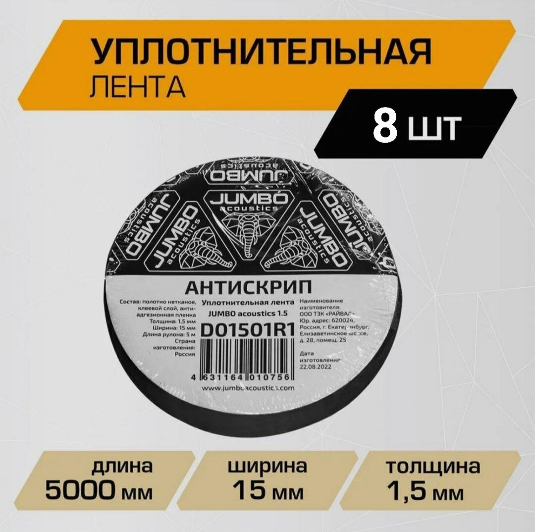 Купить Уплотнительная лента маделин, антискрип для автомобиля, липкая лента, шумоизоляция, JUMBO acoustics 1.5Х15, 8шт, D01501R1.8