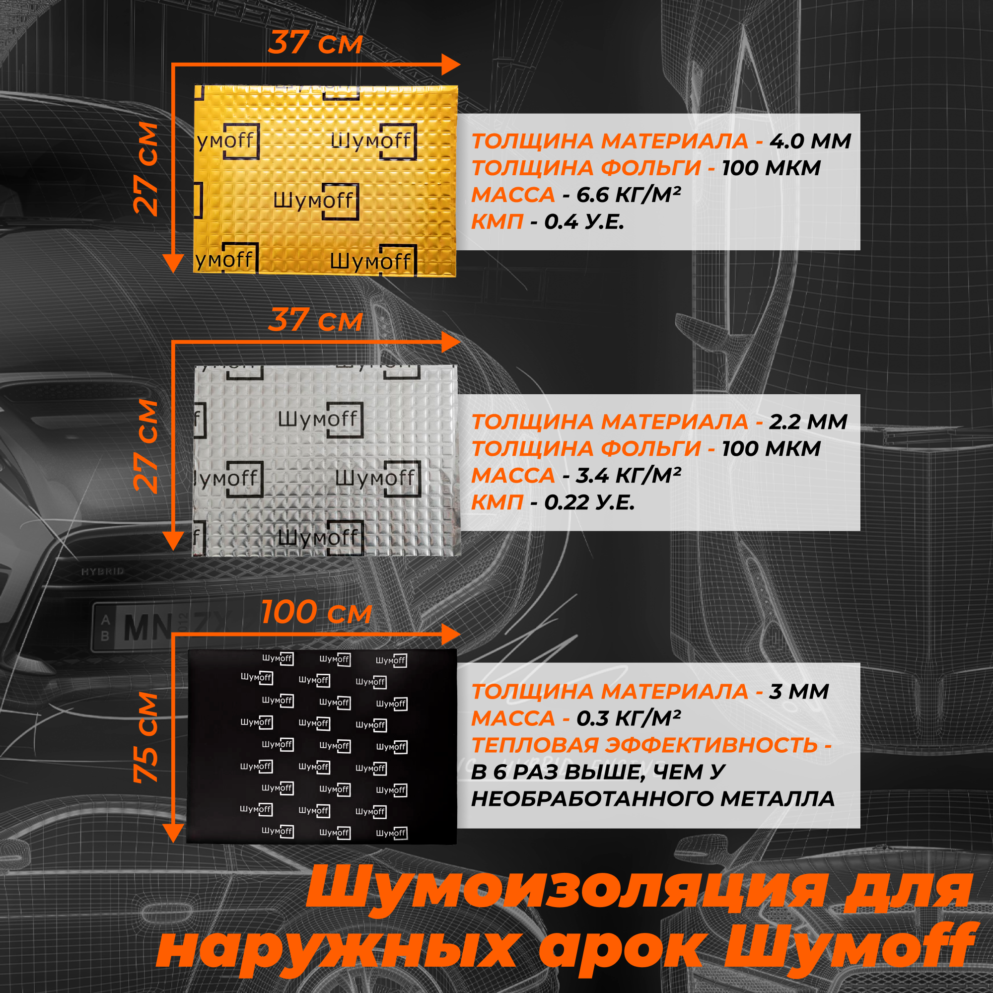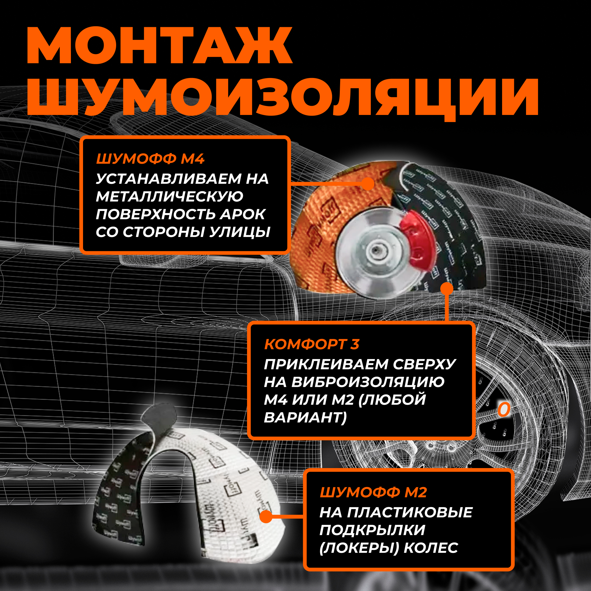 Комплект шумоизоляции на 1 арку снаружи для автомобиля Седан. Виброизоляция Шумофф М2+М4, звукоизоляция Комфорт 3 интересное: