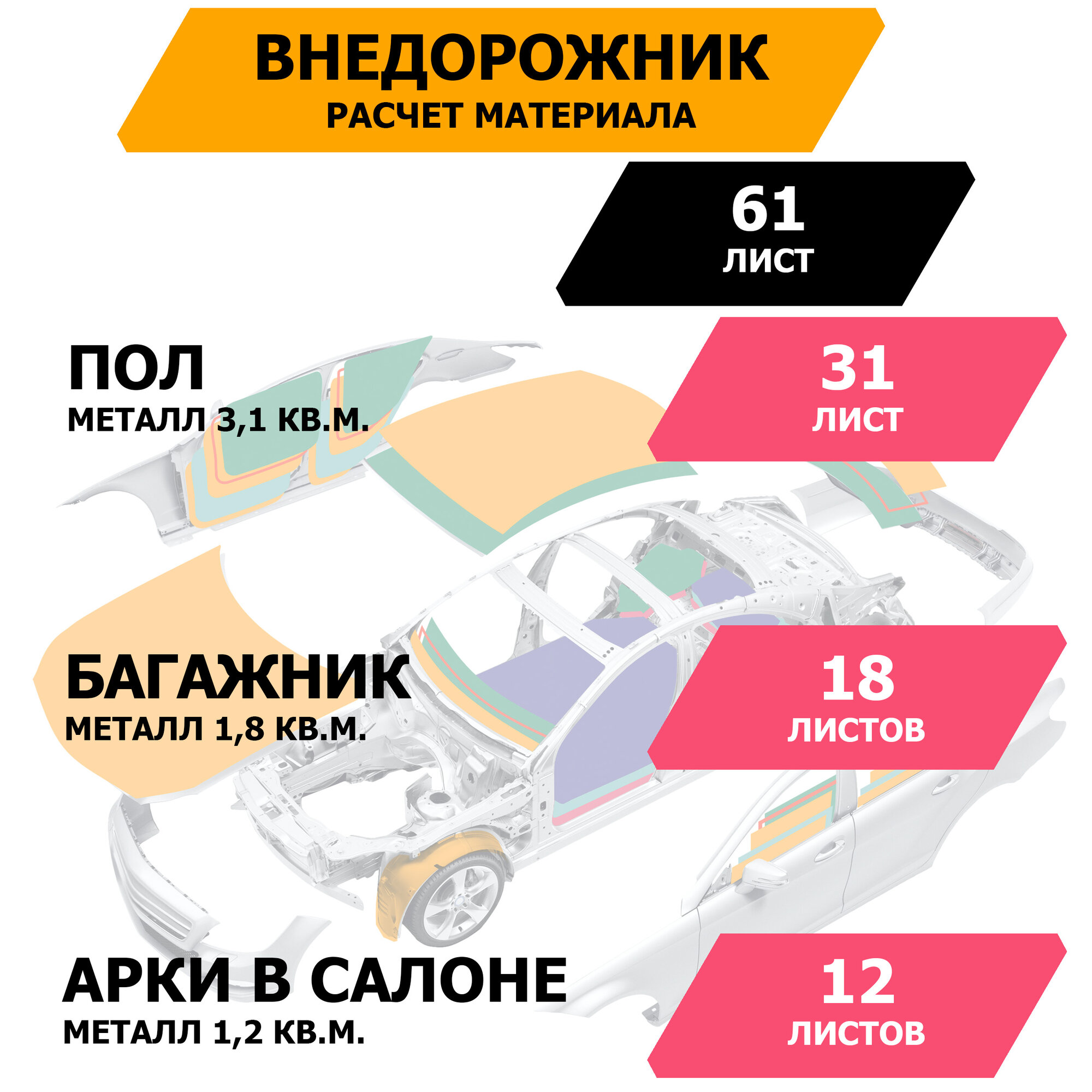 Шумофф Reflex 2 - 36 листов 37.5 см х 23 см Виброизоляция для автомобиля - для потолка, дверей, капота, багажника - толщина 2.0 мм
