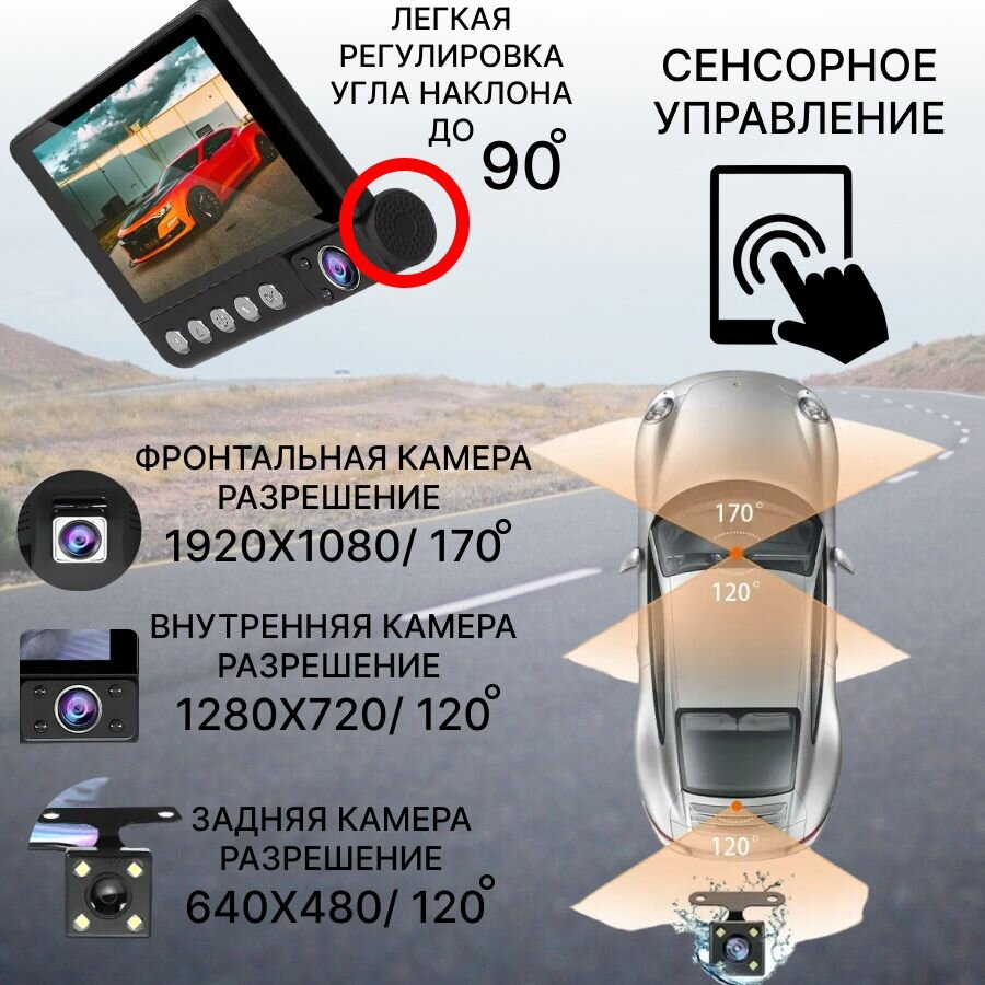 Автомобильный видеорегистратор с сенсорным управлением/ видеорегистратор с камерой заднего вида/ регистратор 3 в 1 для авто интересное: